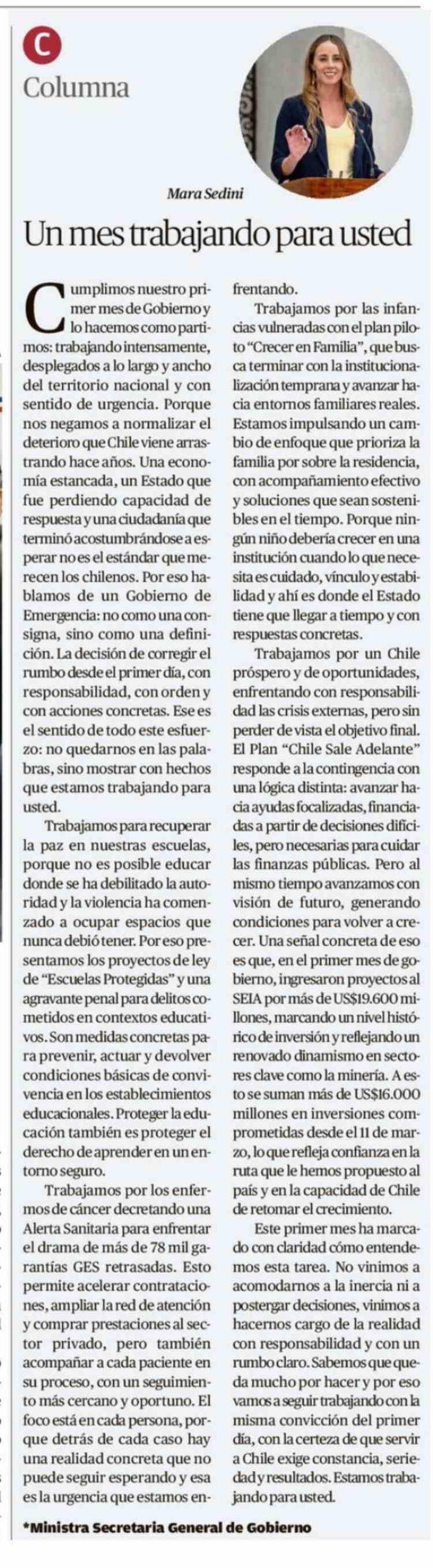 Título: Columnas de Opinión: Un mes trabajando para usted