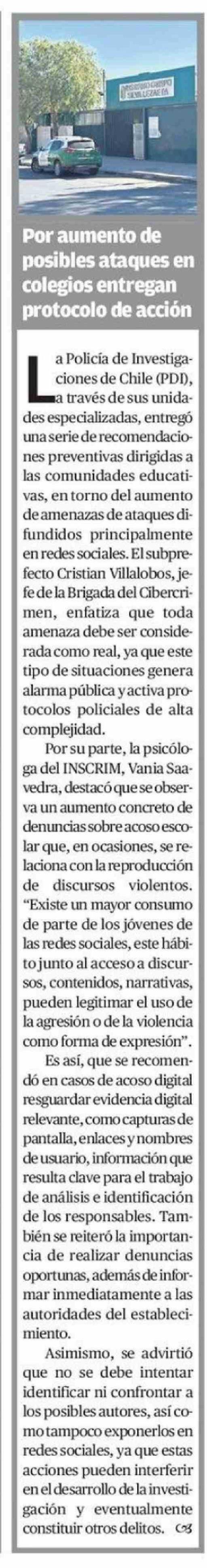 Por aumento de posibles ataques en colegios entregan protocolo de acción