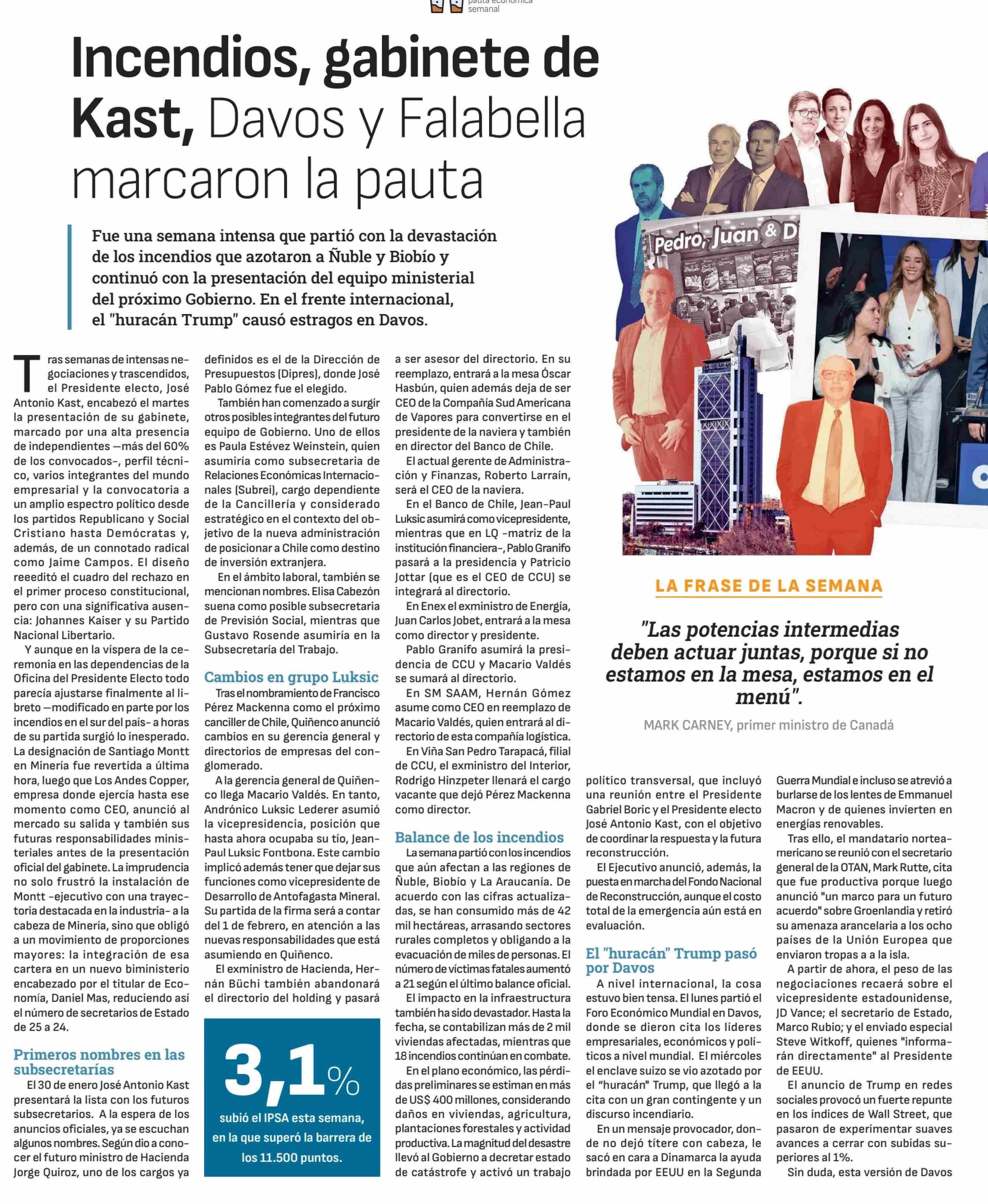 Título: Incendios, gabinete de Kast, Davos y Falabella marcaron la pauta