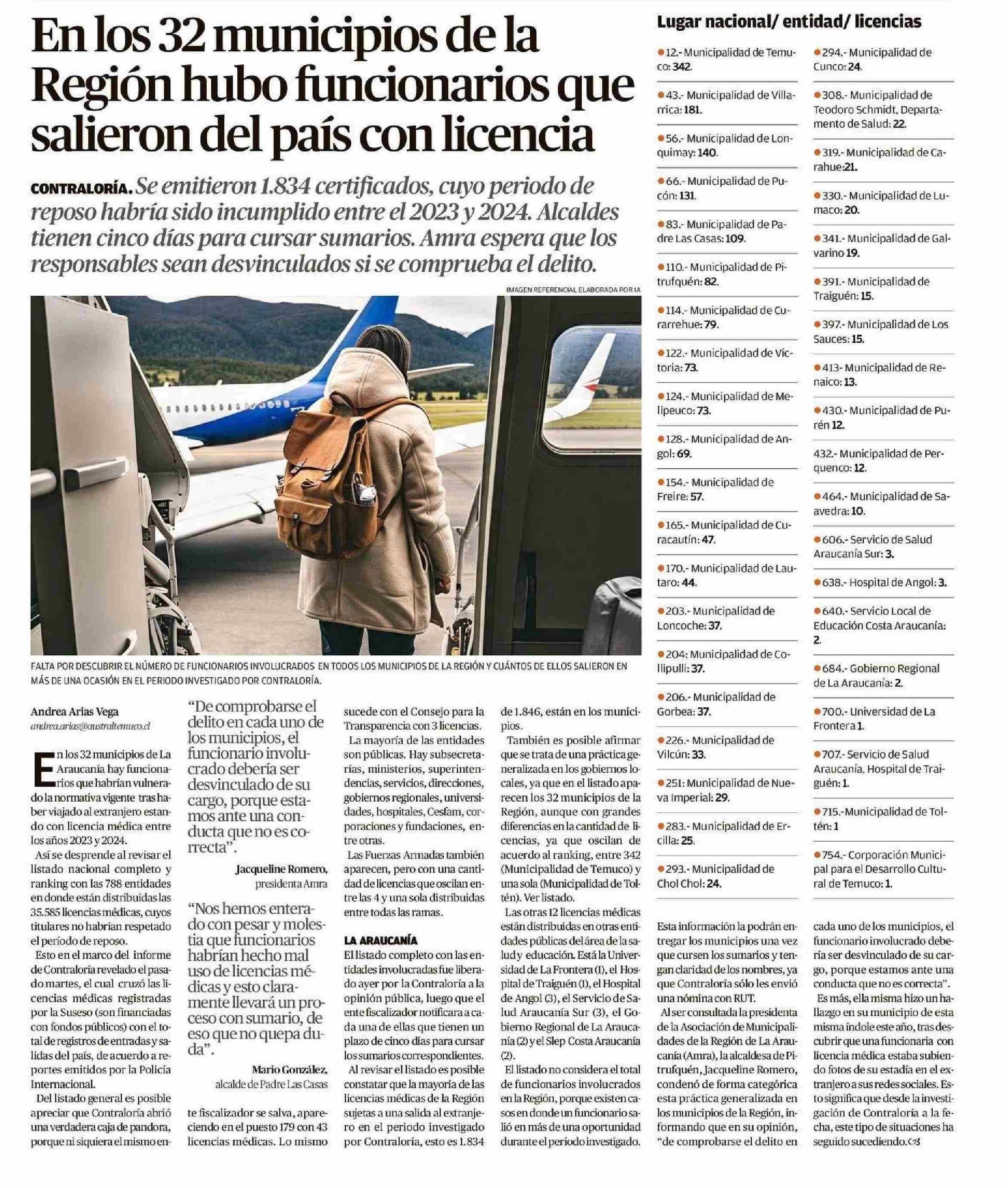 En los 32 municipios de la Región hubo funcionarios que salieron del país con licencia