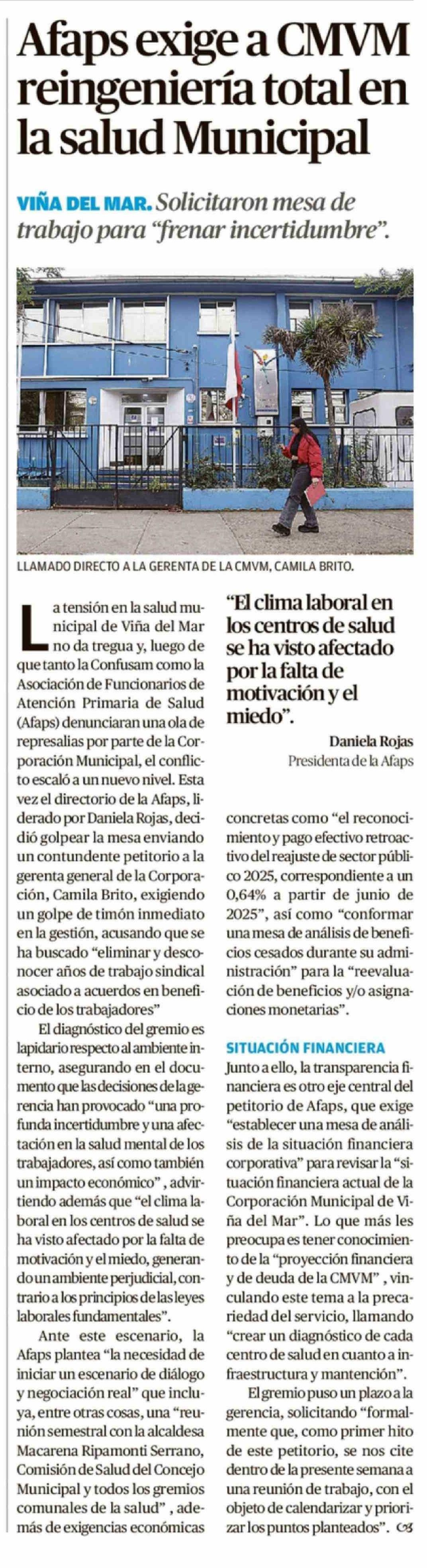 Afaps exige a CMVM reingeniería total en la salud Municipal
