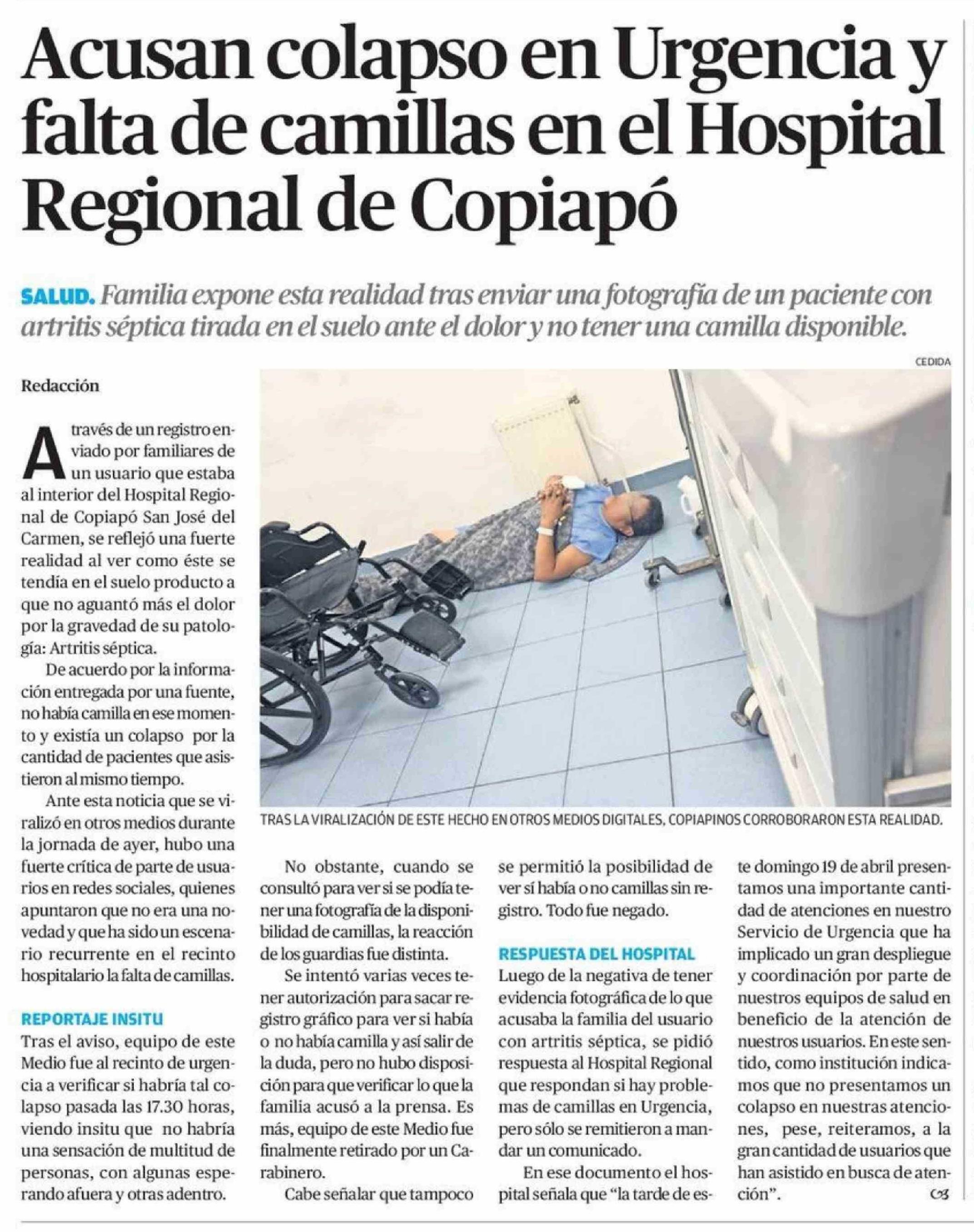 Título: Acusan colapso en Urgencia y falta de camillas en el Hospital Regional de Copiapó