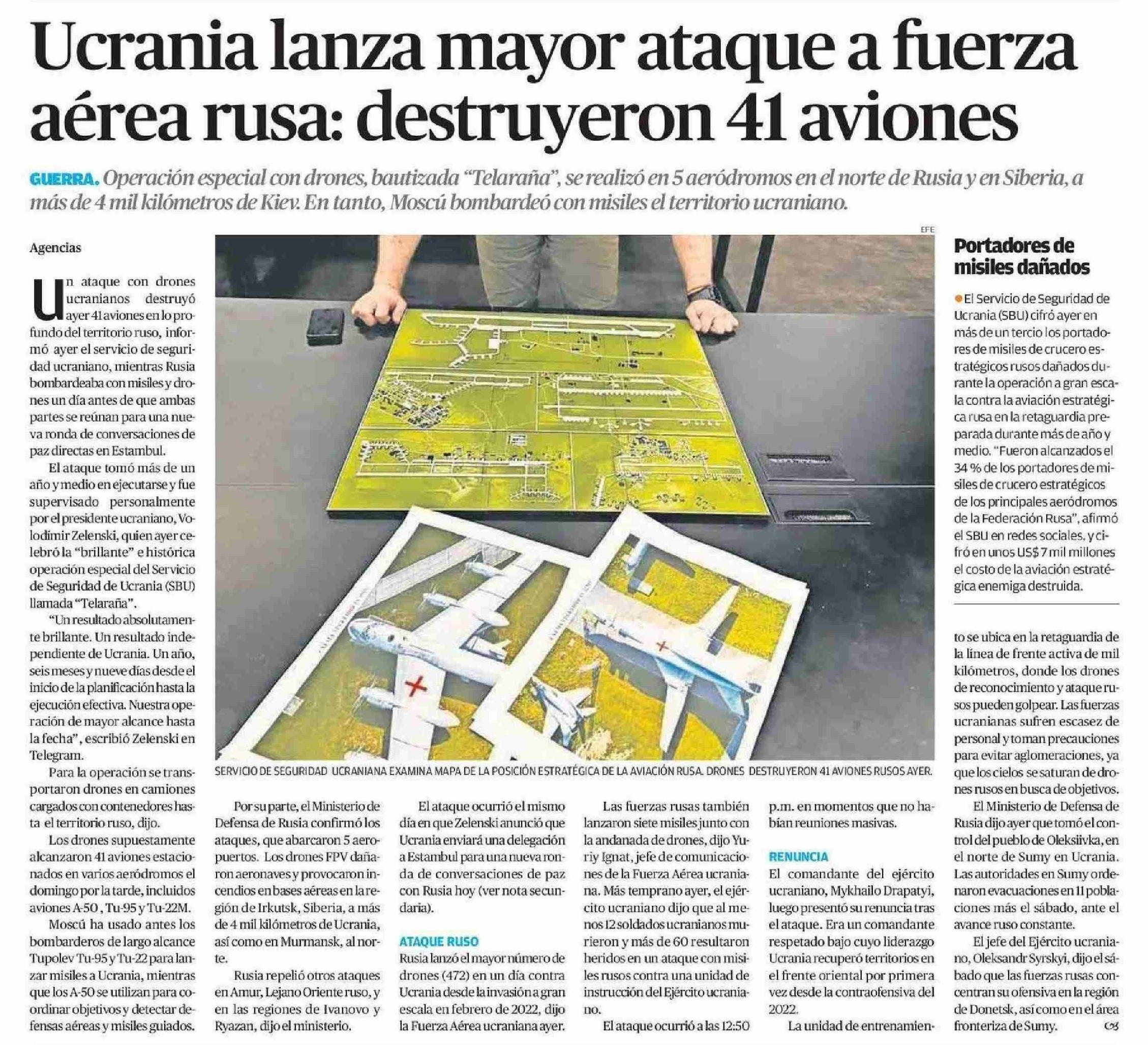 Ucrania lanza mayor ataque a fuerza aérea rusa: destruyeron 41 aviones