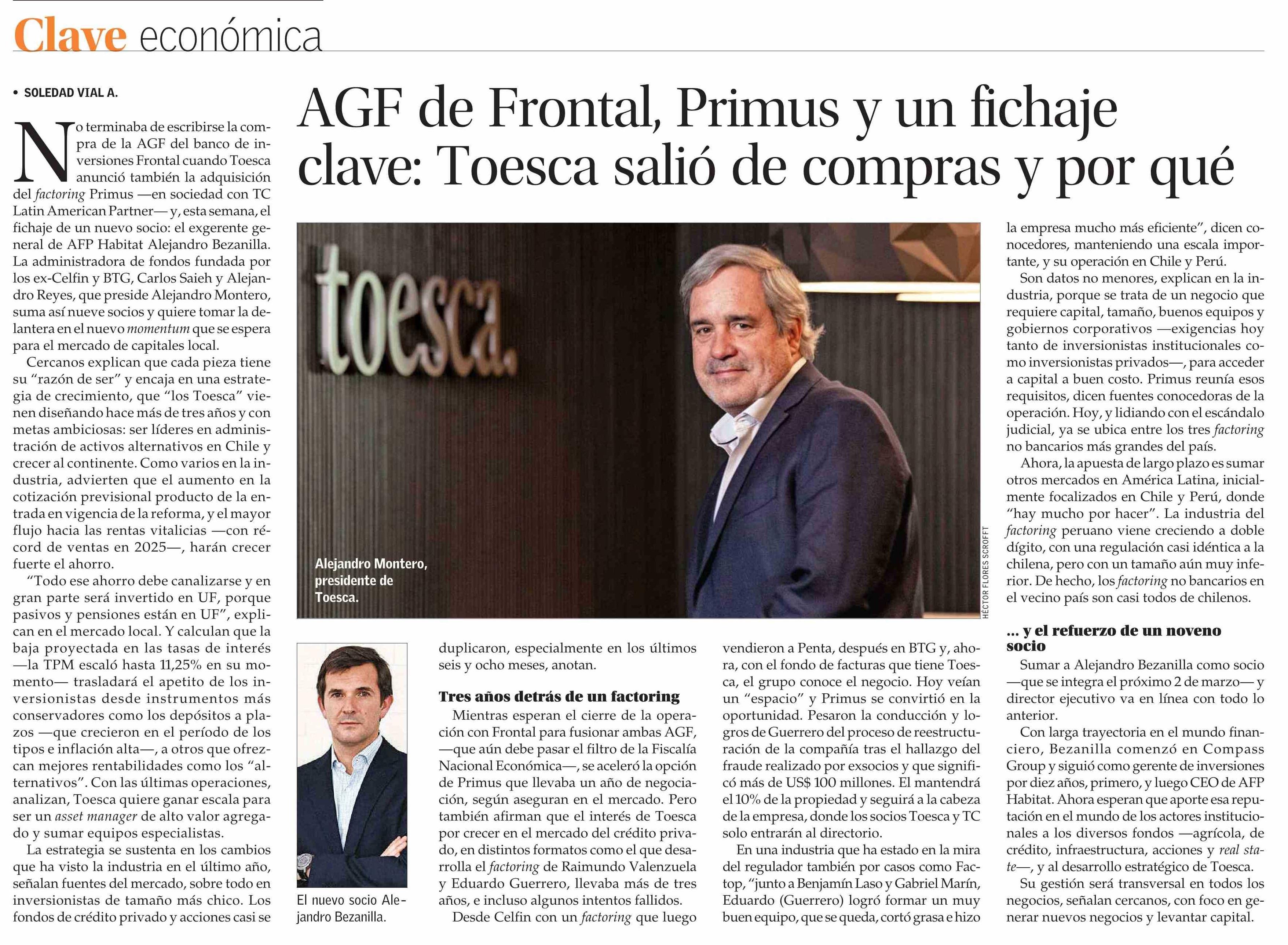 AGF de Frontal, Primus y un fichaje clave: Toesca salió de compras y por qué