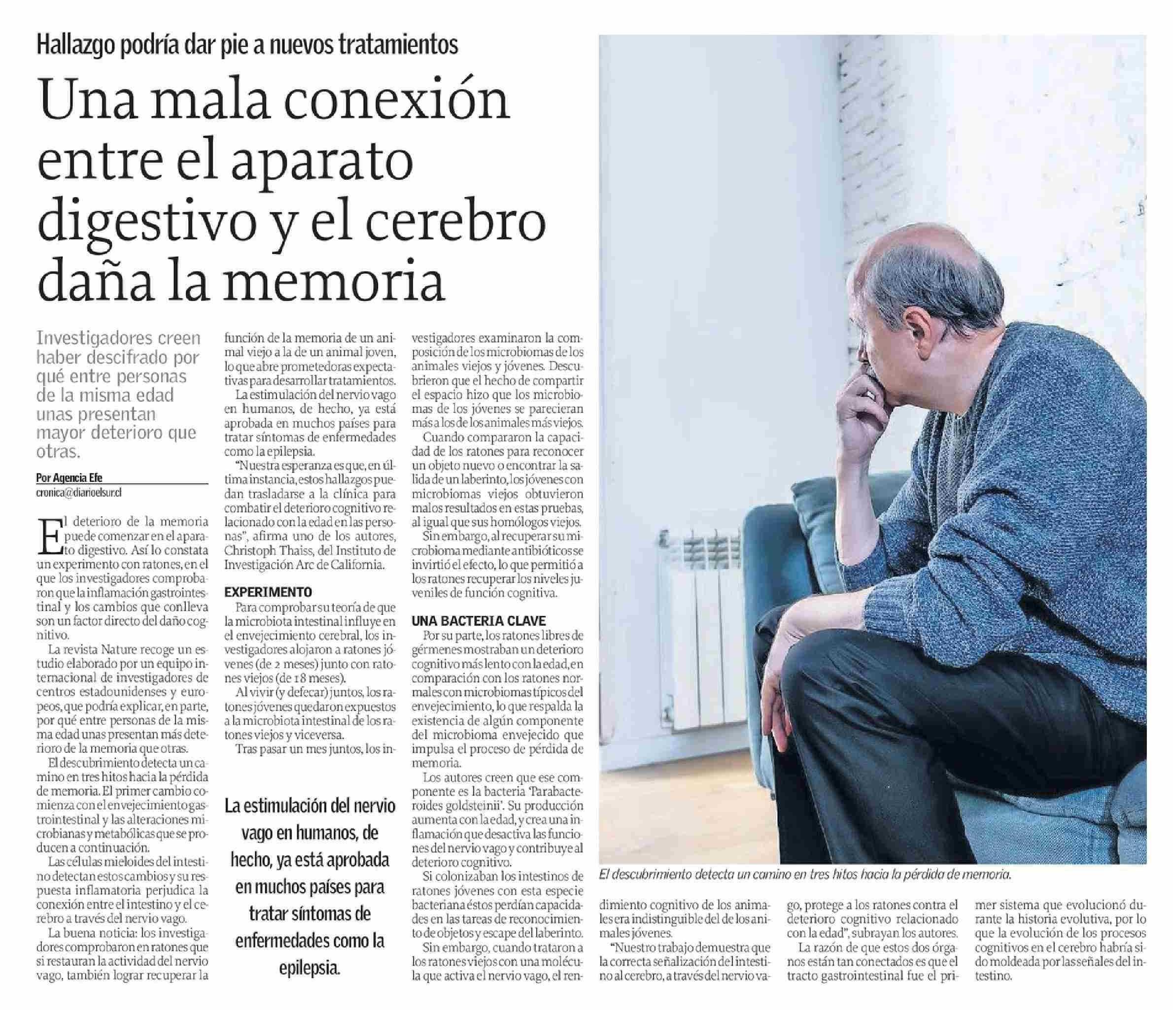 Una mala conexión entre el aparato digestivo y el cerebro daña la memoria
