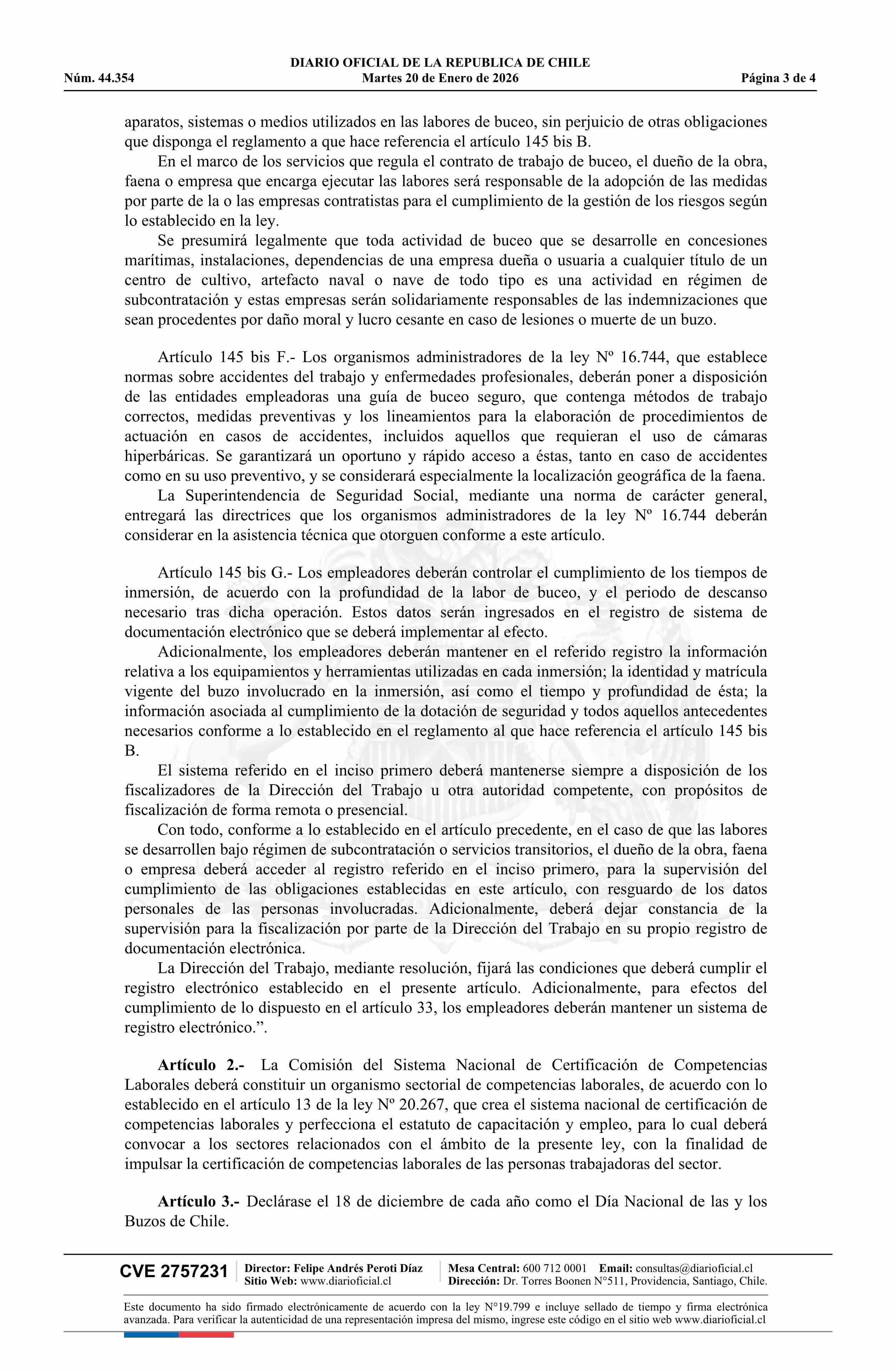 Ley número 21.789.- Crea el contrato de buceo y actividades conexas