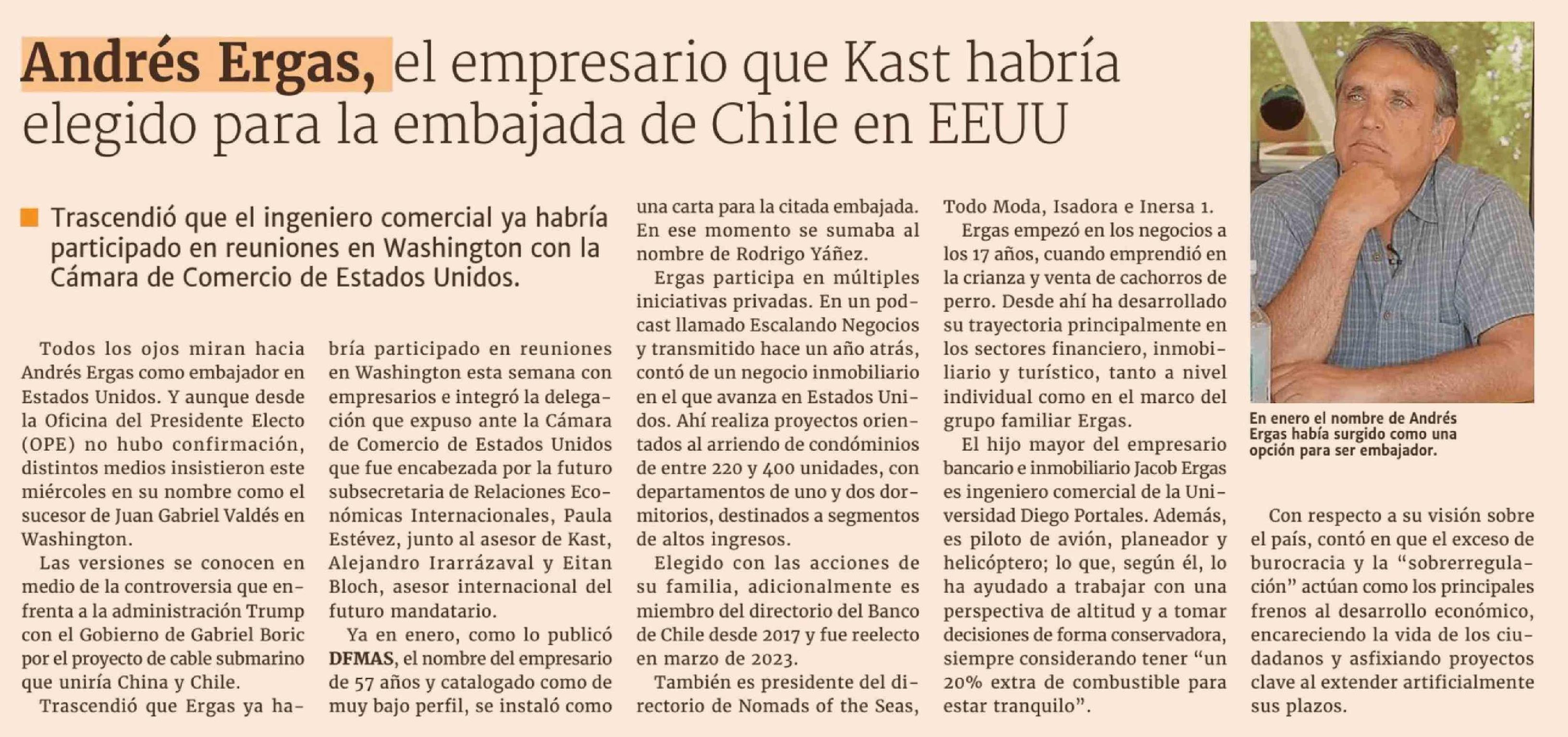 Andrés Ergas, el empresario que Kast habría elegido para la embajada de Chile en EEUU