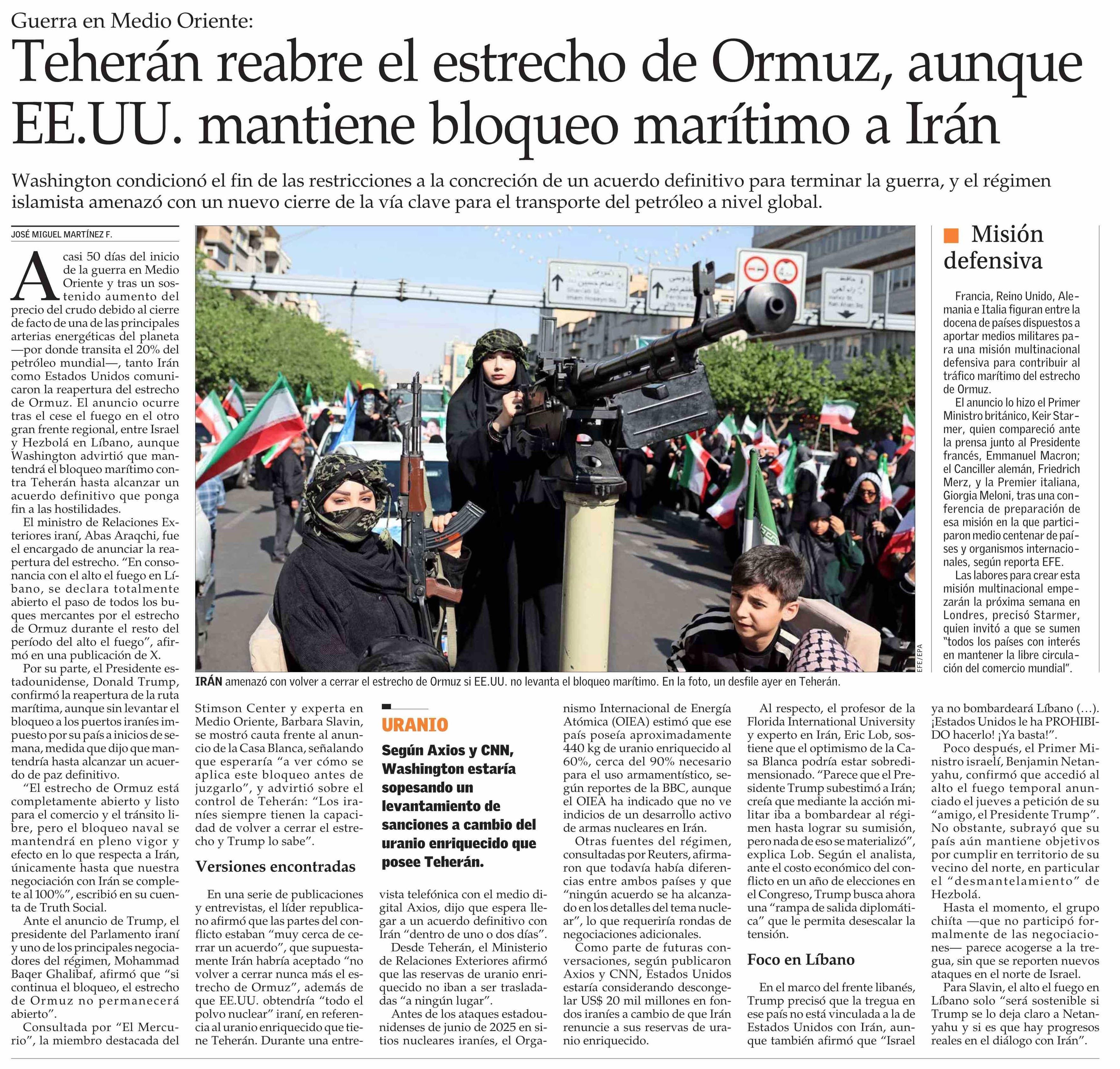 Teherán reabre el estrecho de Ormuz, aunque EE.UU. mantiene bloqueo marítimo a Irán