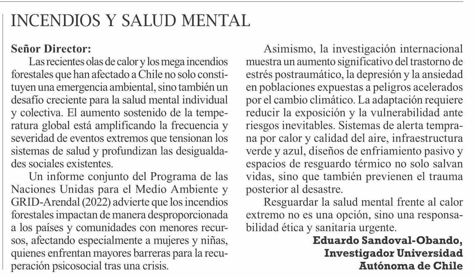 CARTAS: INCENDIOS Y SALUD MENTAL