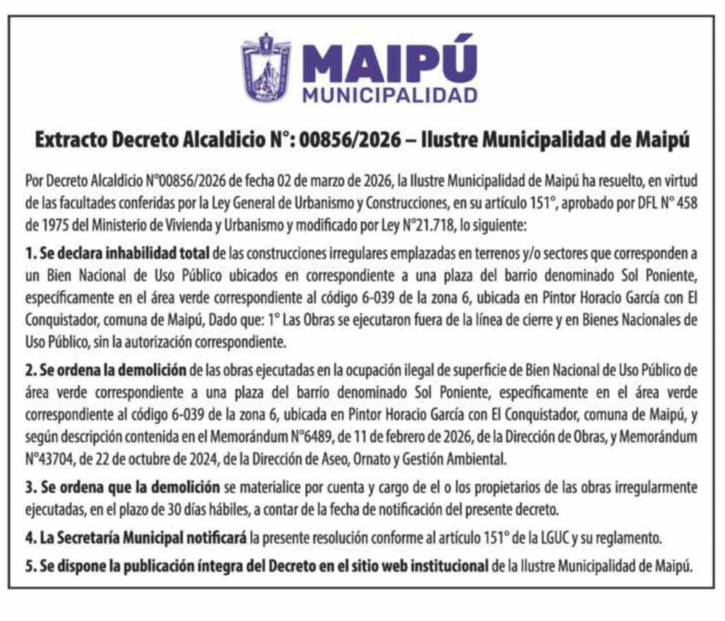 EXTRACTOS: Municipalidad de Maipú