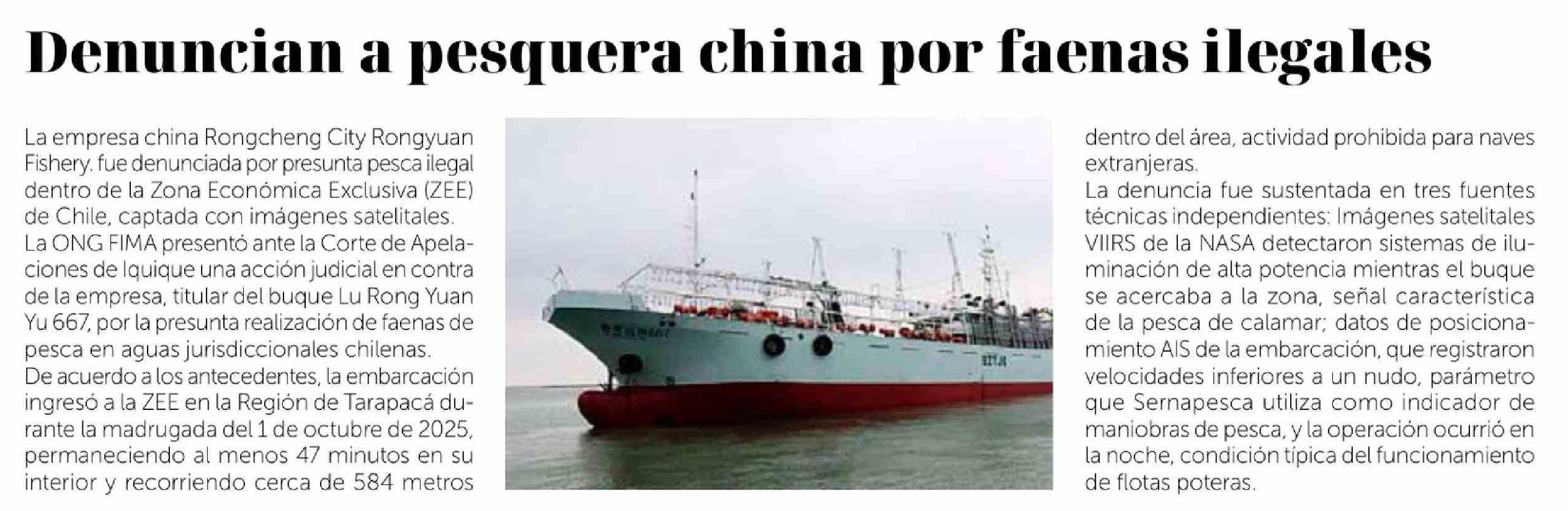 Denuncian a pesquera china por faenas ilegales