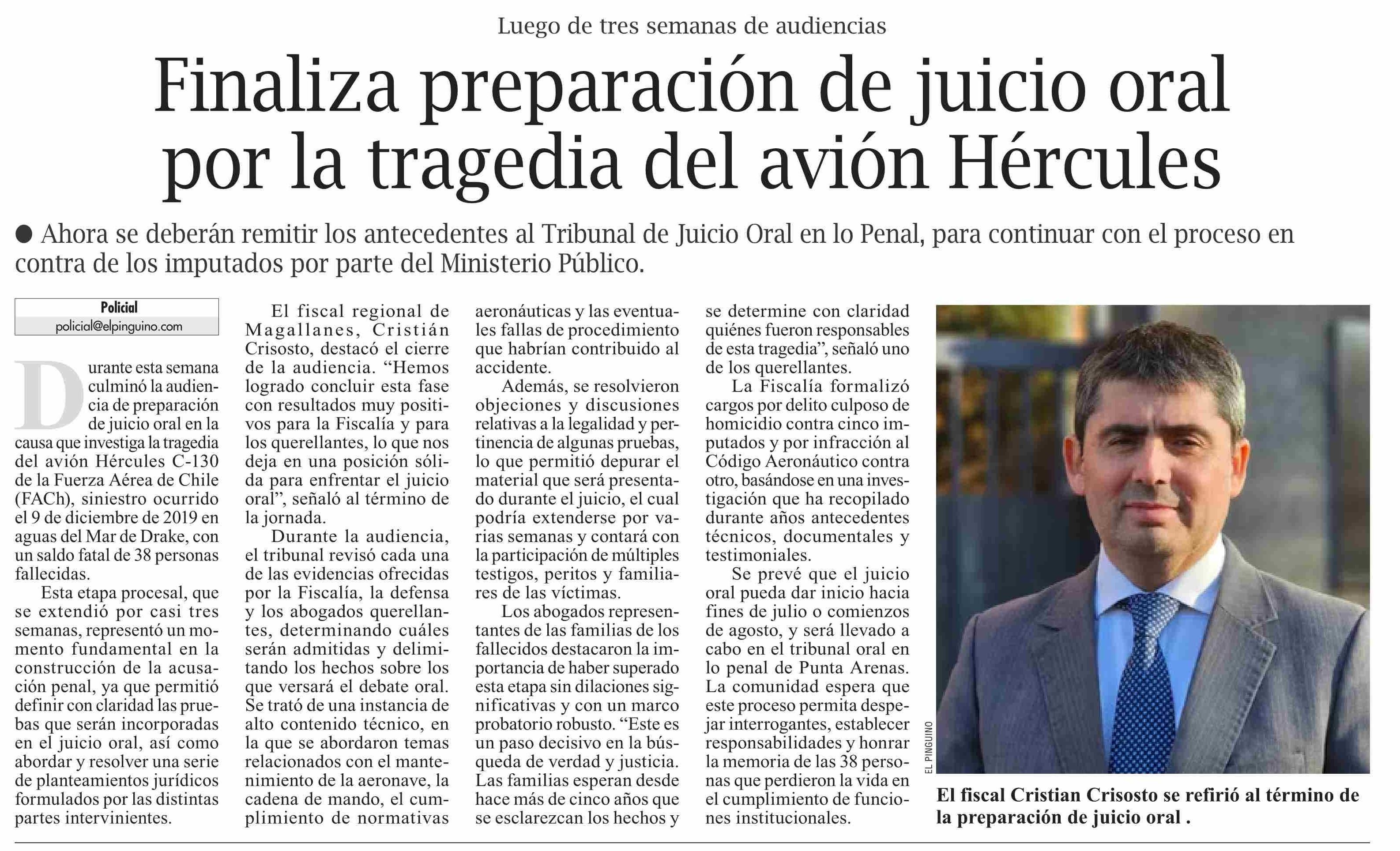 Finaliza preparación de juicio oral por la tragedia del avión Hércules
