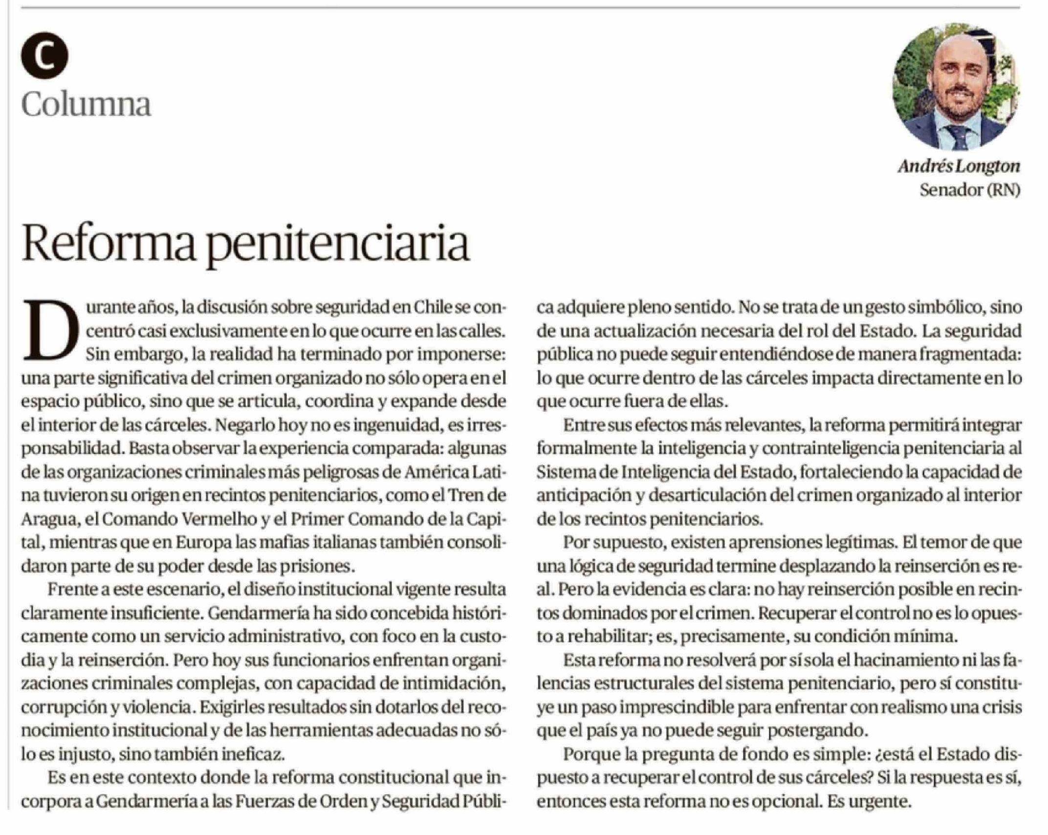 Columnas de Opinión: Reforma penitenciaria