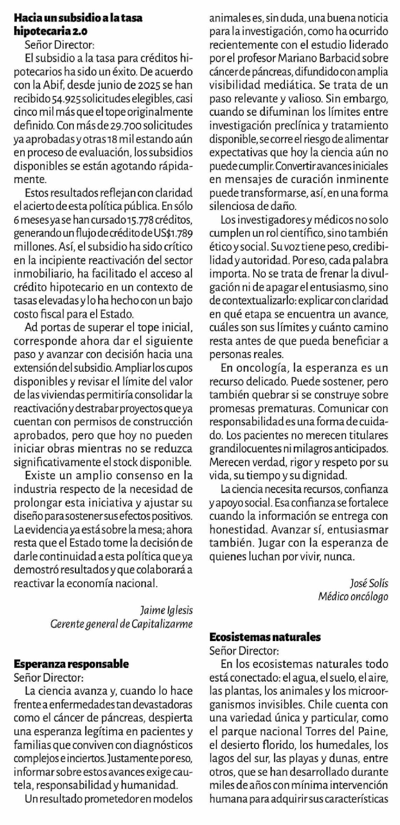 Cartas: Esperanza responsable