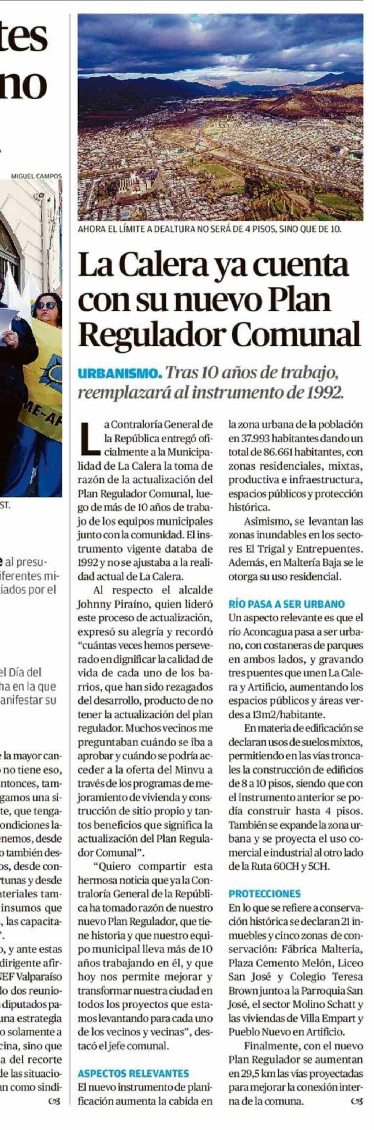 La Calera ya cuenta con su nuevo Plan Regulador Comunal