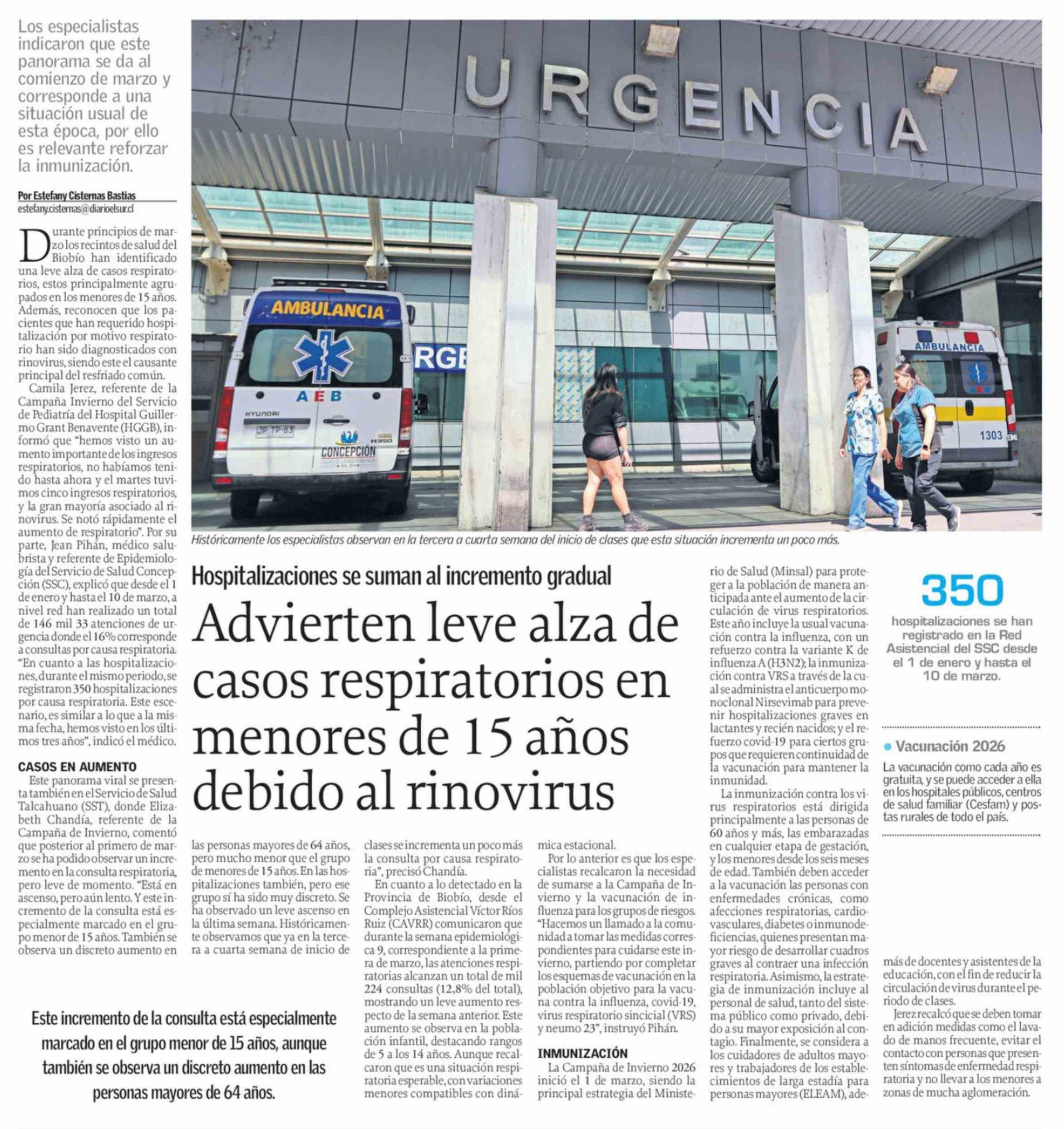 Advierten leve alza de casos respiratorios en menores de 15 años debido al rinovirus