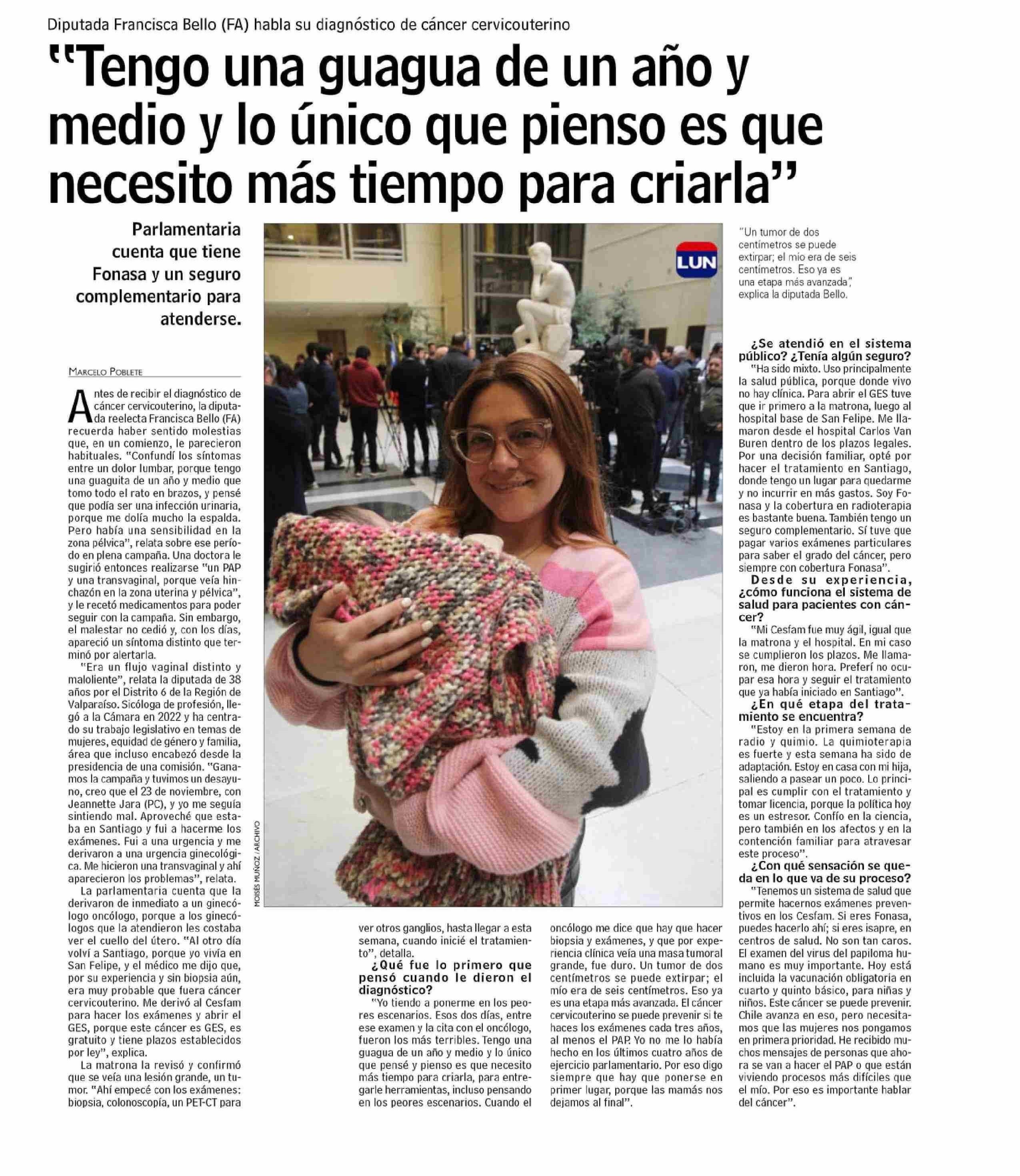Título: “Tengo una guagua de un año y medio y lo único que pienso es que necesito más tiempo para criarla”