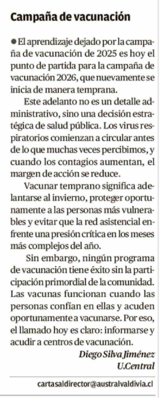 Cartas: Campaña de vacunación