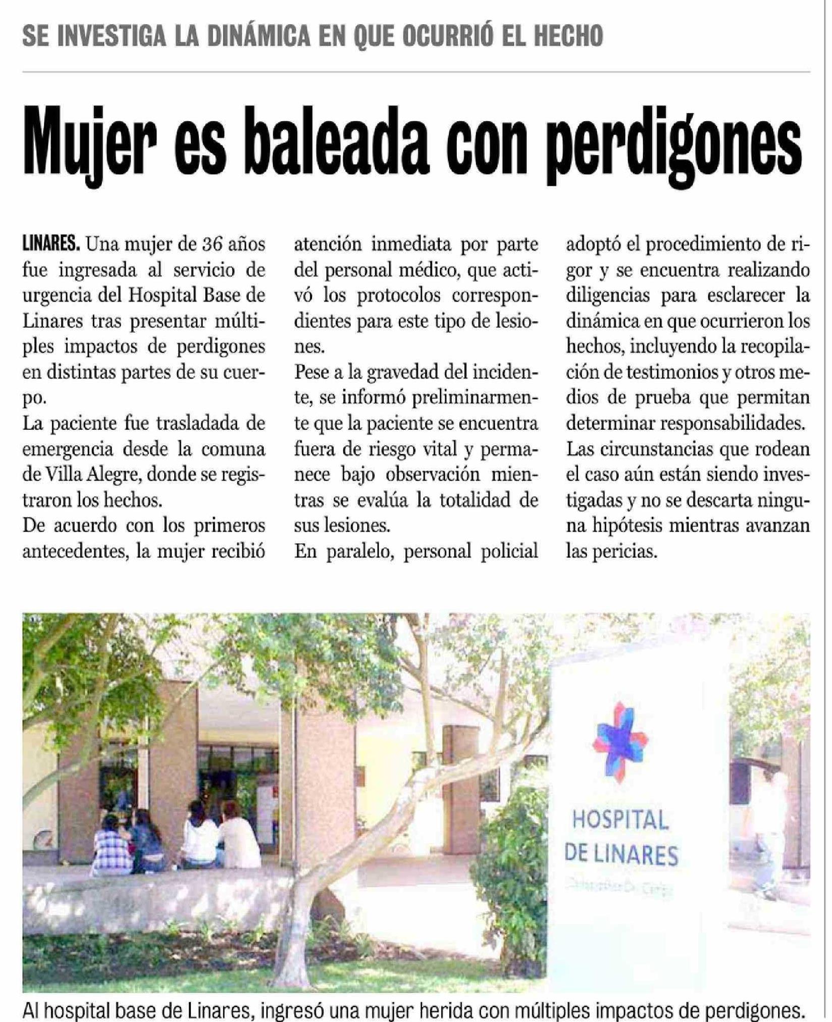 Mujer es baleada con perdigones