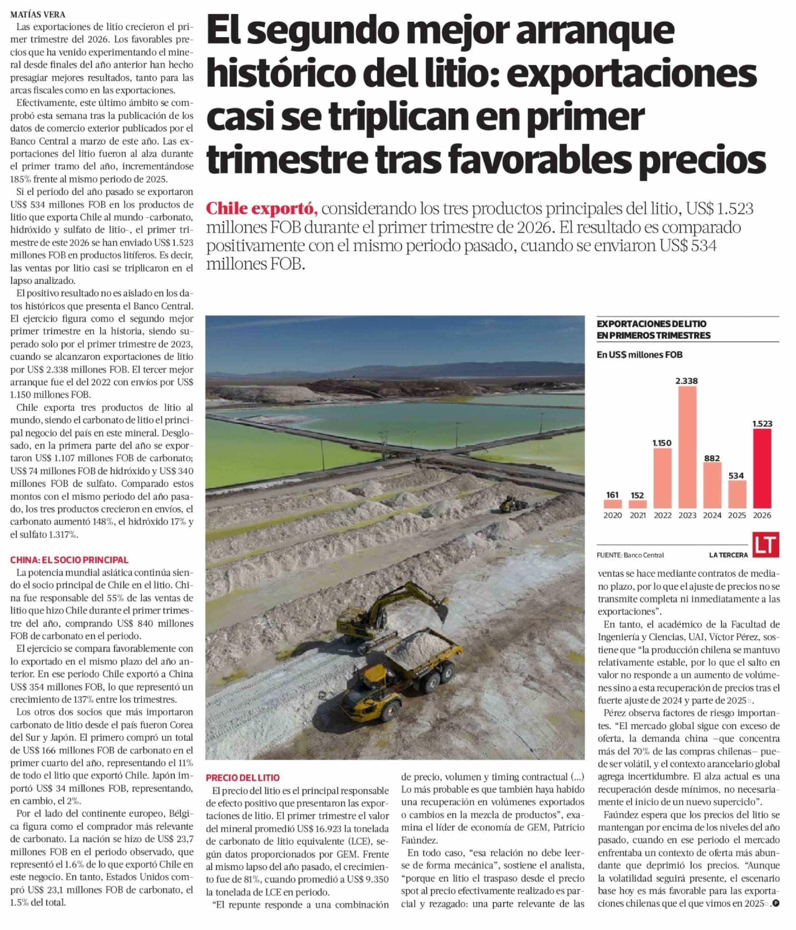 El segundo mejor arranque histórico del litio: exportaciones casi se triplican en primer trimestre tras favorables precios