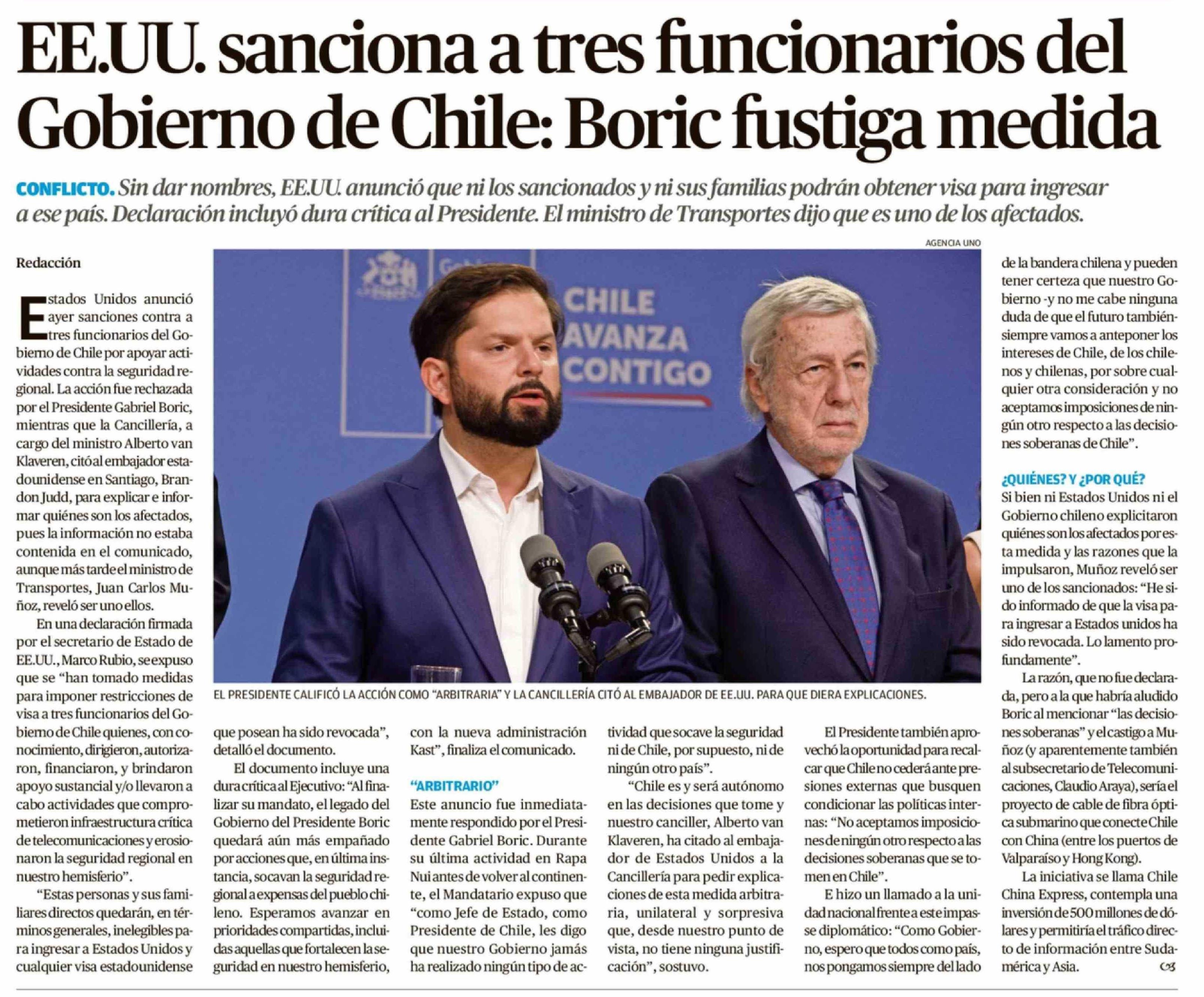 EE.UU. sanciona a tres funcionarios del Gobierno de Chile: Boric fustiga medida