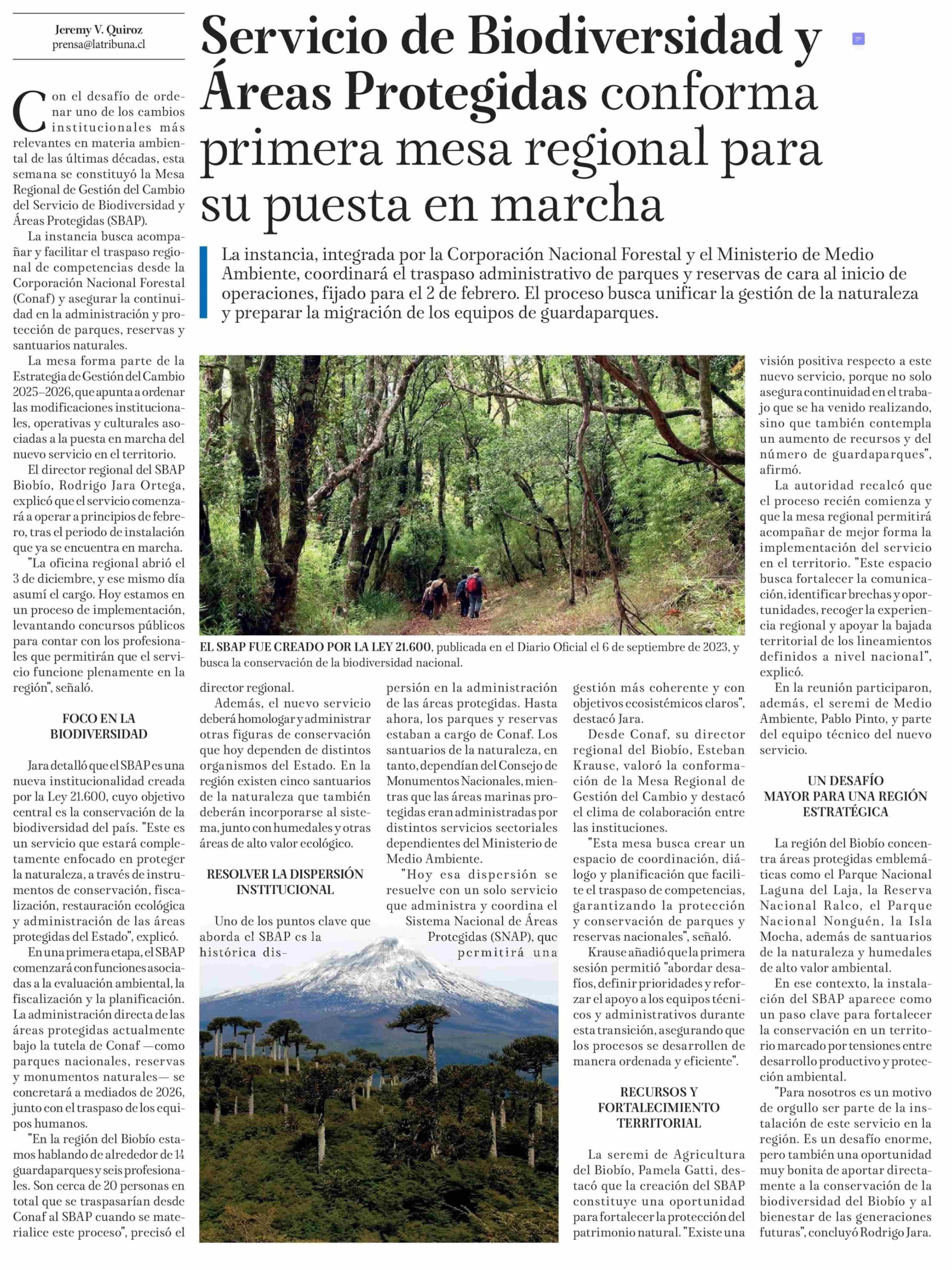Servicio de Biodiversidad y Áreas Protegidas conforma primera mesa regional para su puesta en marcha