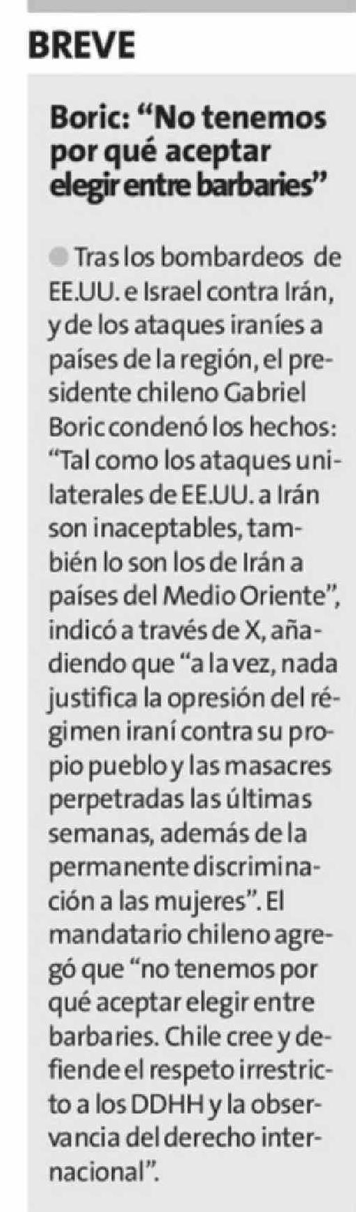 Boric: "No tenemos por qué aceptar elegir entre barbaries"