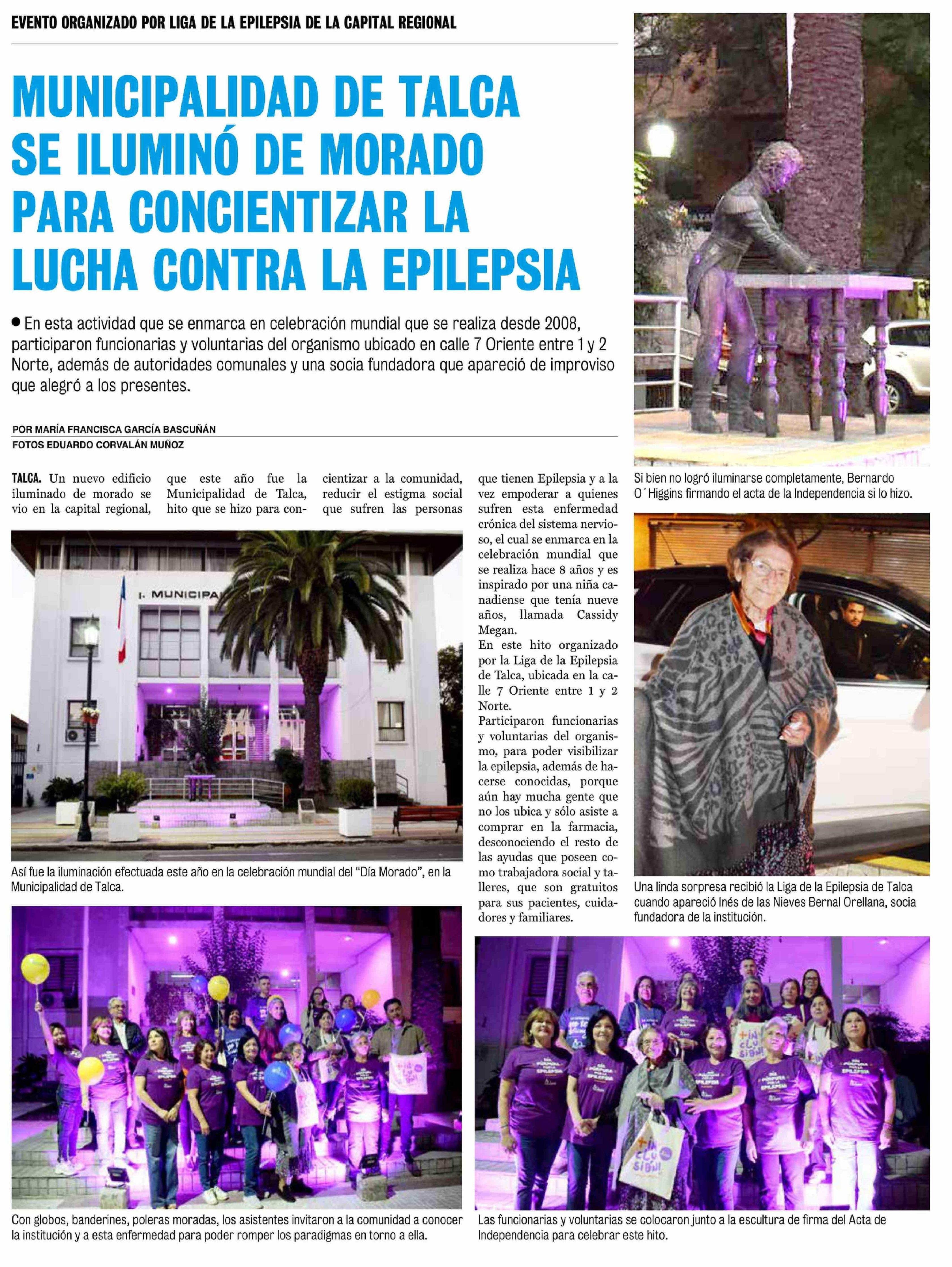 MUNICIPALIDAD DE TALCA SE ILUMINÓ DE MORADO PARA CONCIENTIZAR LA LUCHA CONTRA LA EPILEPSIA