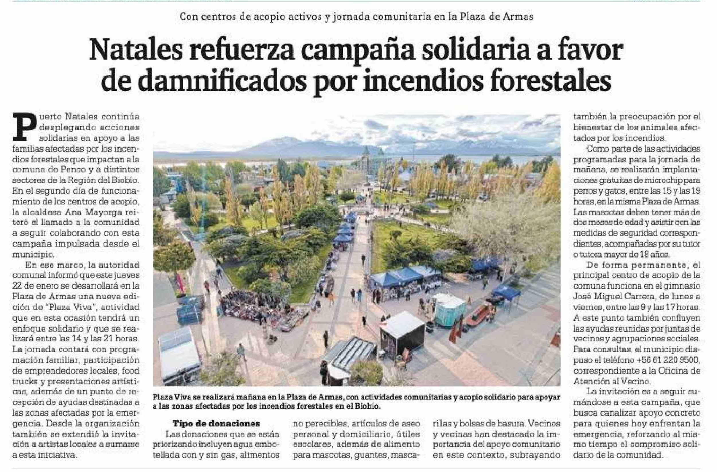Natales refuerza campaña solidaria a favor de damnificados por incendios forestales