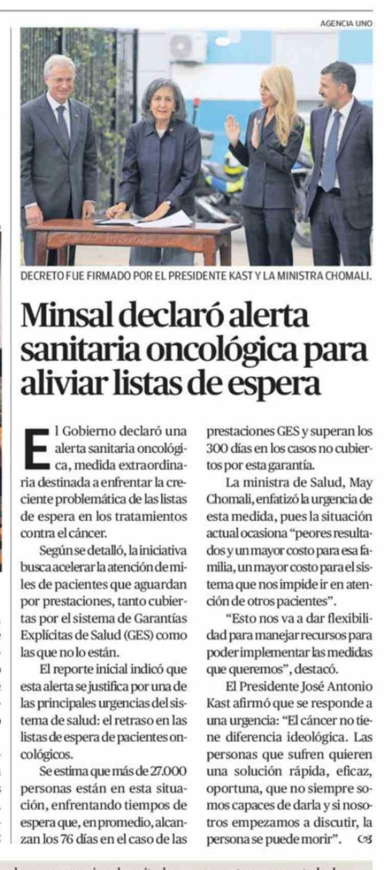 Minsal declaró alerta sanitaria oncológica para aliviar listas de espera