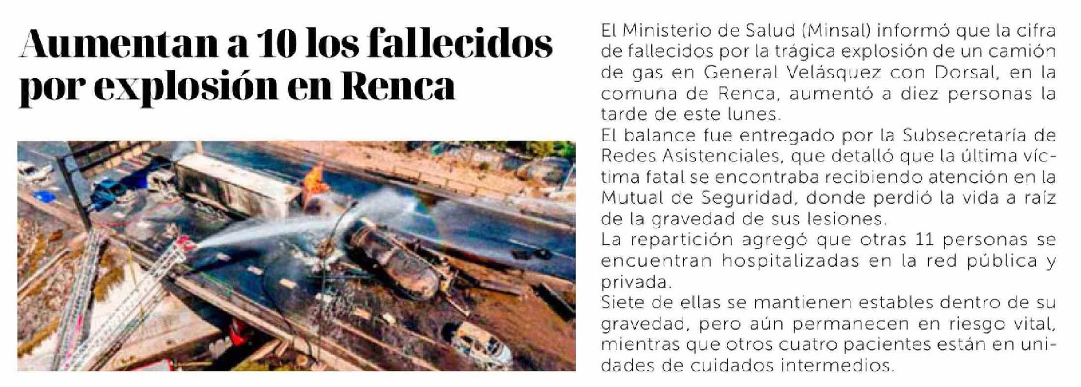 Título: Aumentan a 10 los fallecidos por explosión en Renca