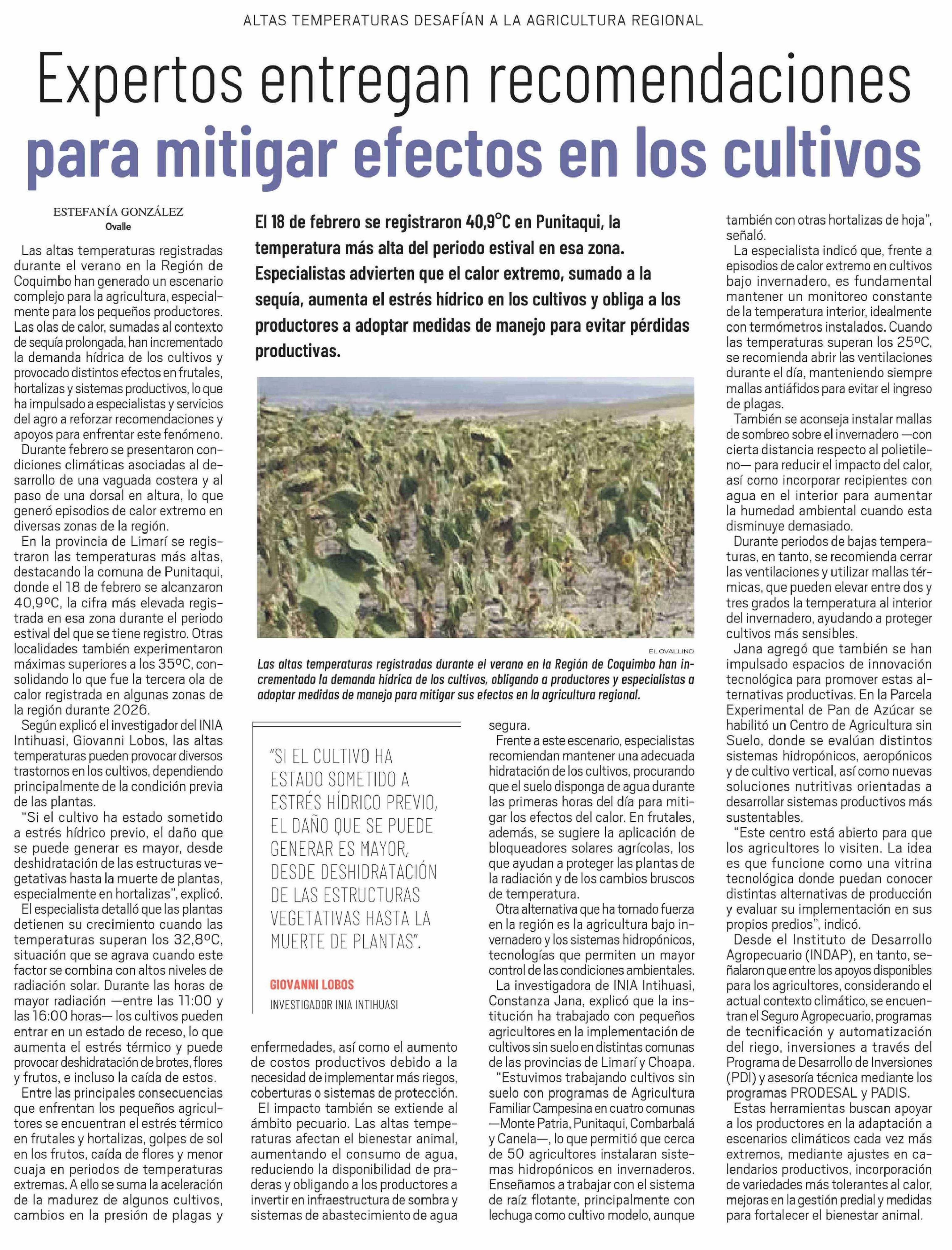 Expertos entregan recomendaciones para mitigar efectos en los cultivos