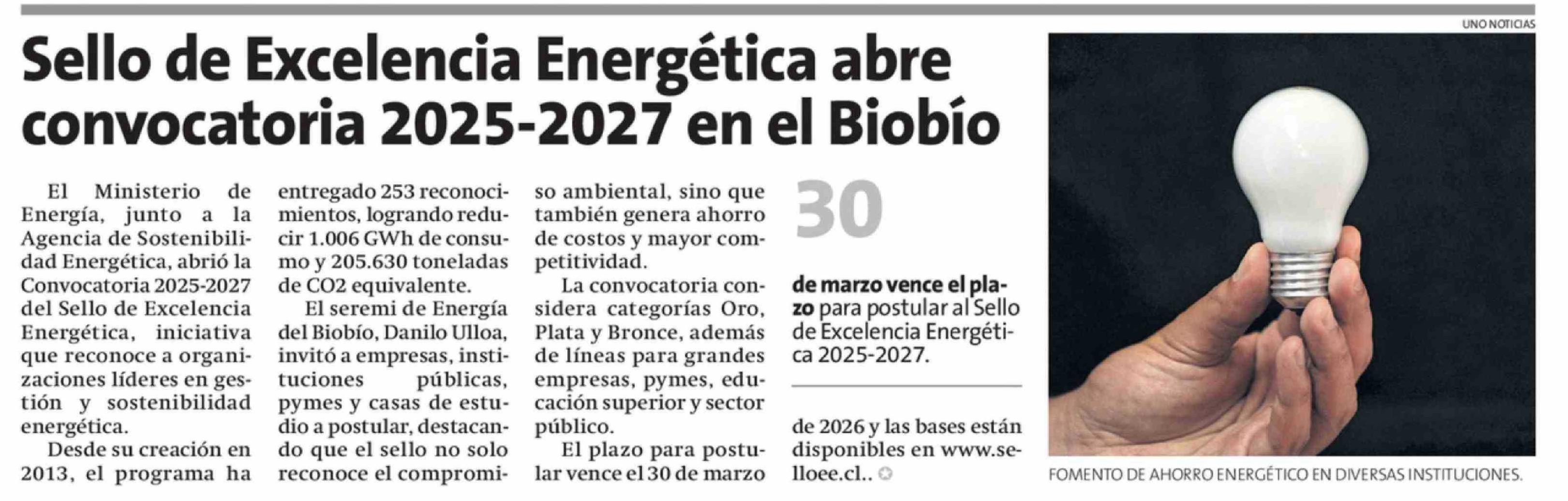 Sello de Excelencia Energética abre convocatoria 2025-2027 en el Biobio