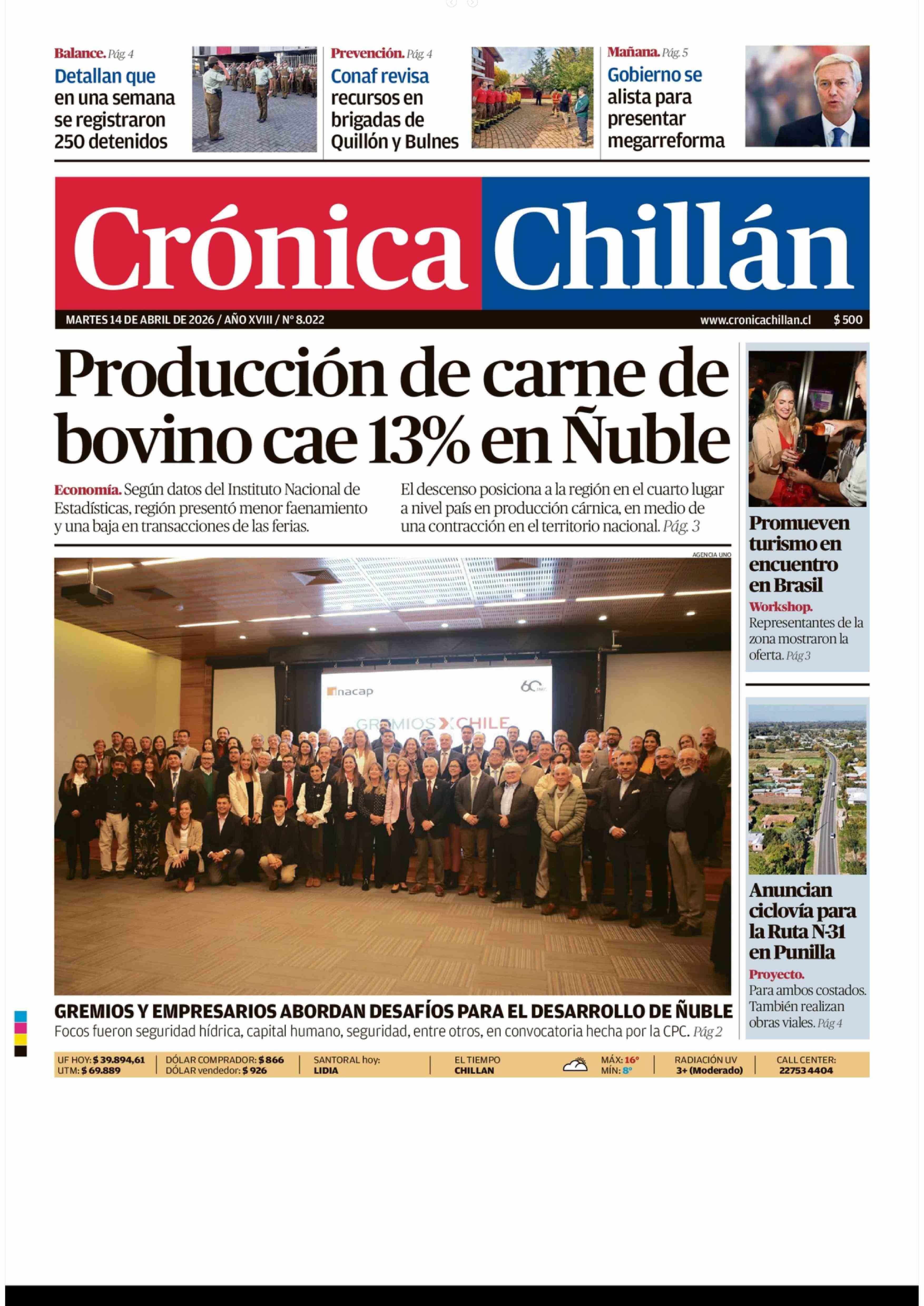 PORTADA CRÓNICA CHILLÁN CHILE