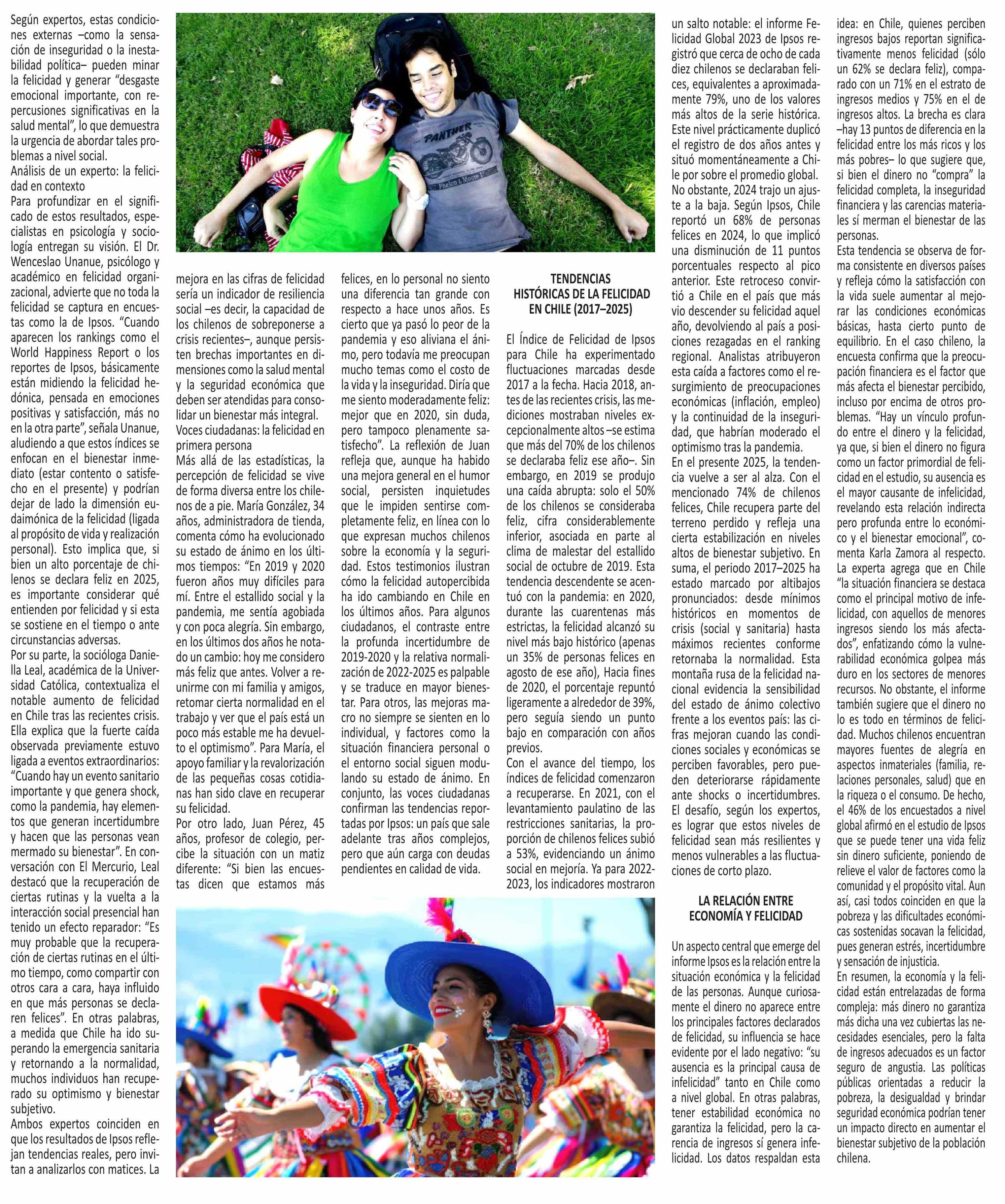 Chile mejora su felicidad en 2025 según Ipsos, pero persisten desafíos en bienestar