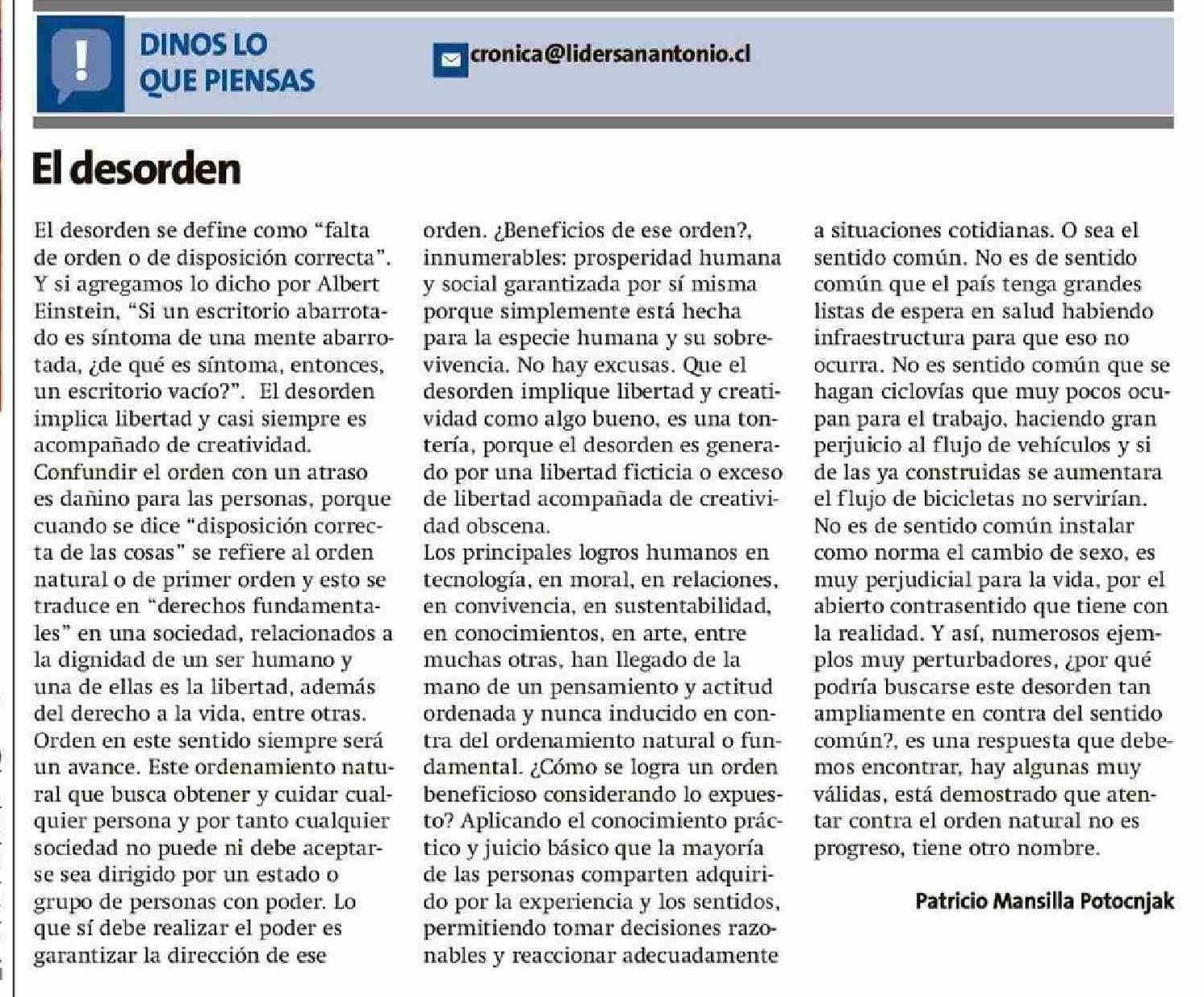 Columnas de Opinión: El desorden