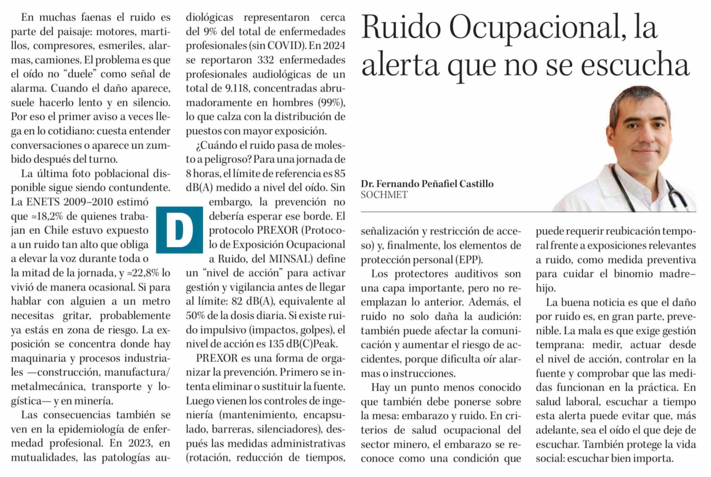 Columnas de Opinión: Ruido Ocupacional, la alerta que no se escucha
