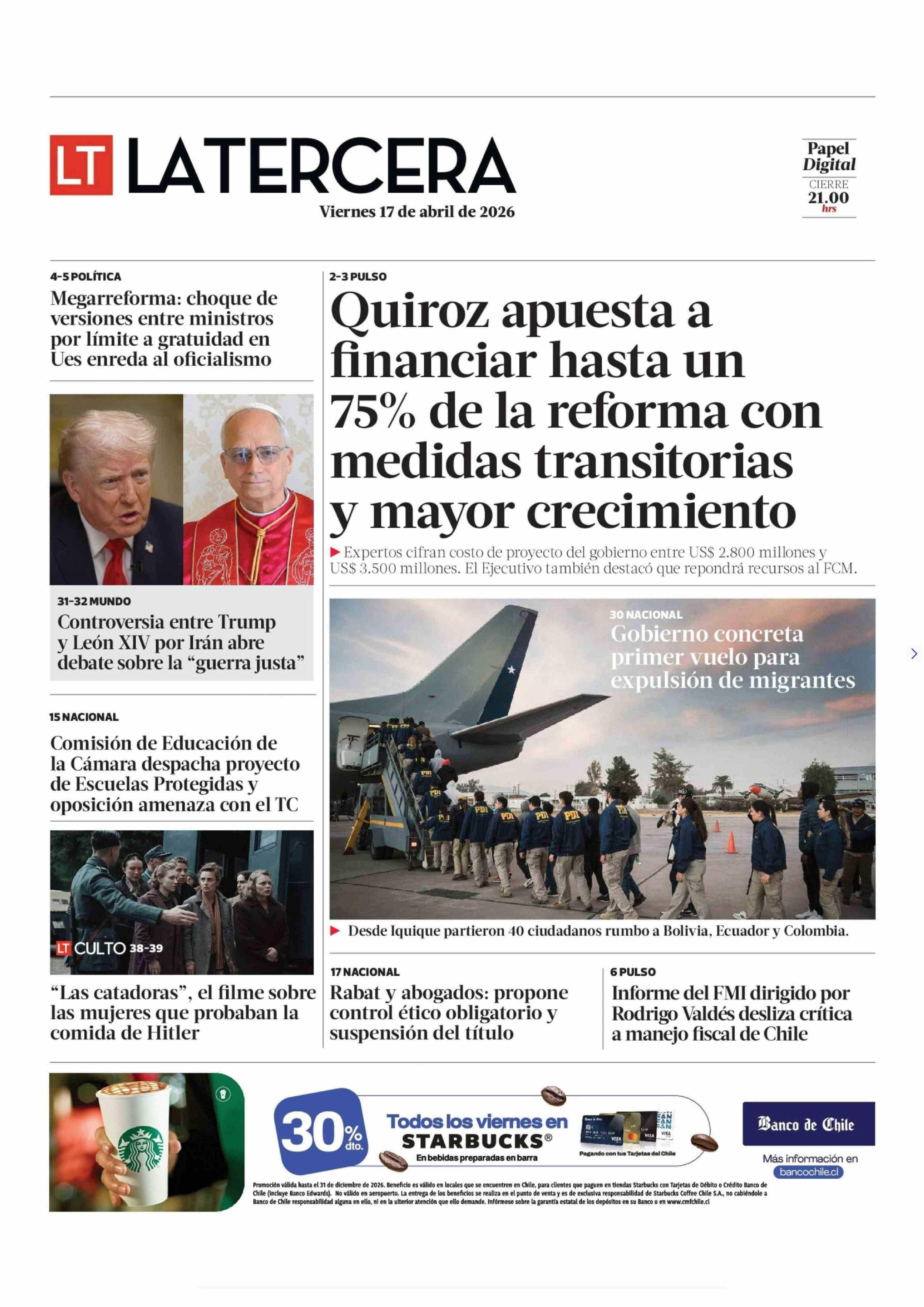 PORTADA LA TERCERA CHILE