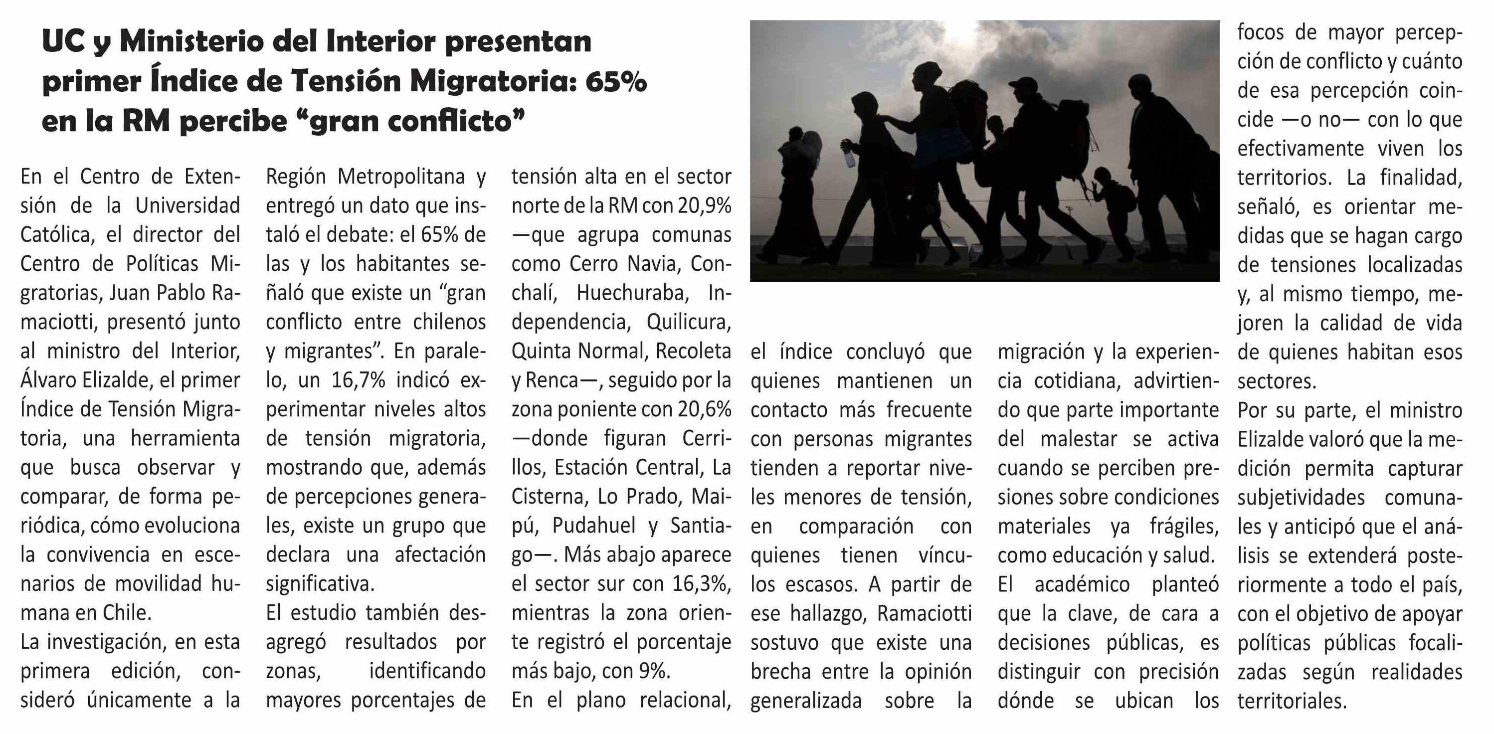 UC y Ministerio del Interior presentan primer Índice de Tensión Migratoria: 65% en la RM percibe "gran conflicto"
