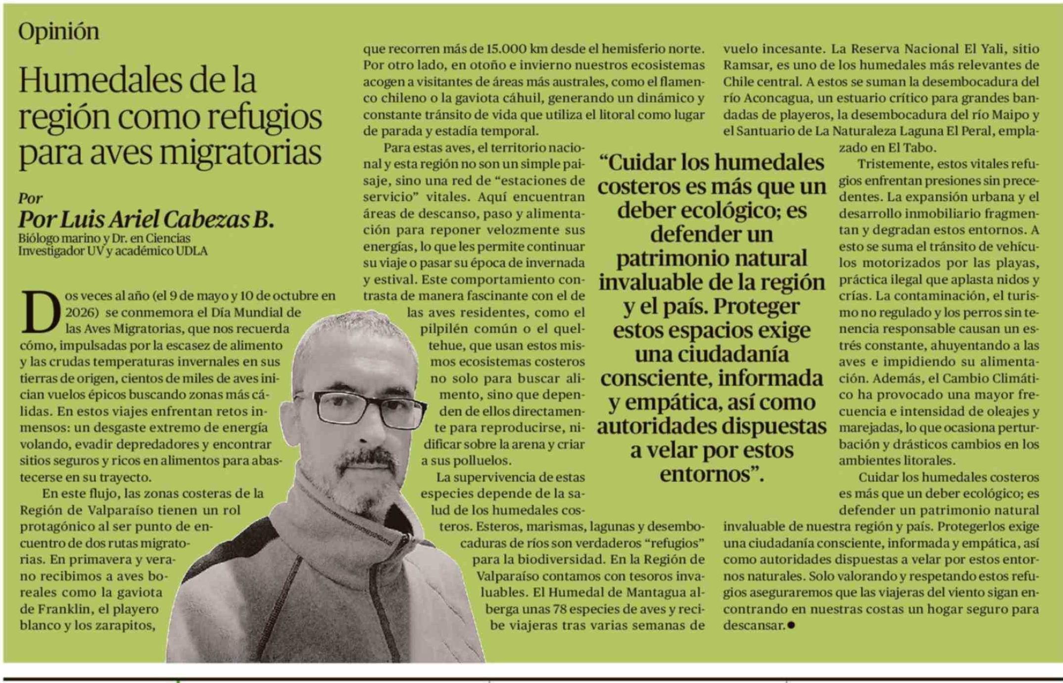 Columnas de Opinión: Humedales de la región como refugios para aves migratorias