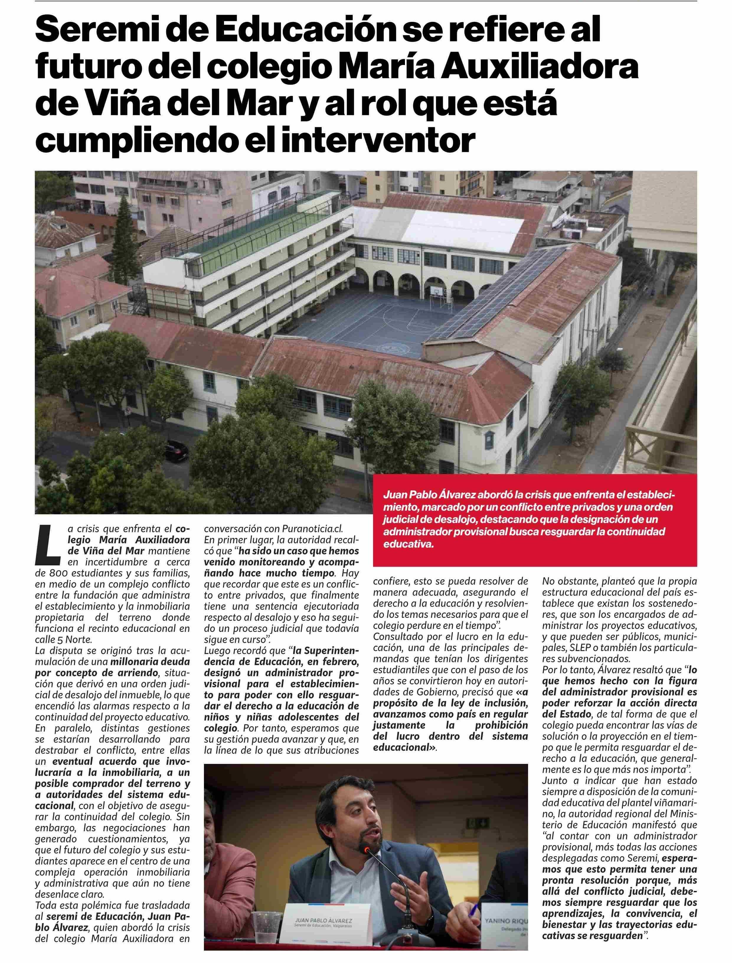 Seremi de Educación se refiere al futuro del colegio María Auxiliadora de Viña del Mar y al rol que está cumpliendo el interventor