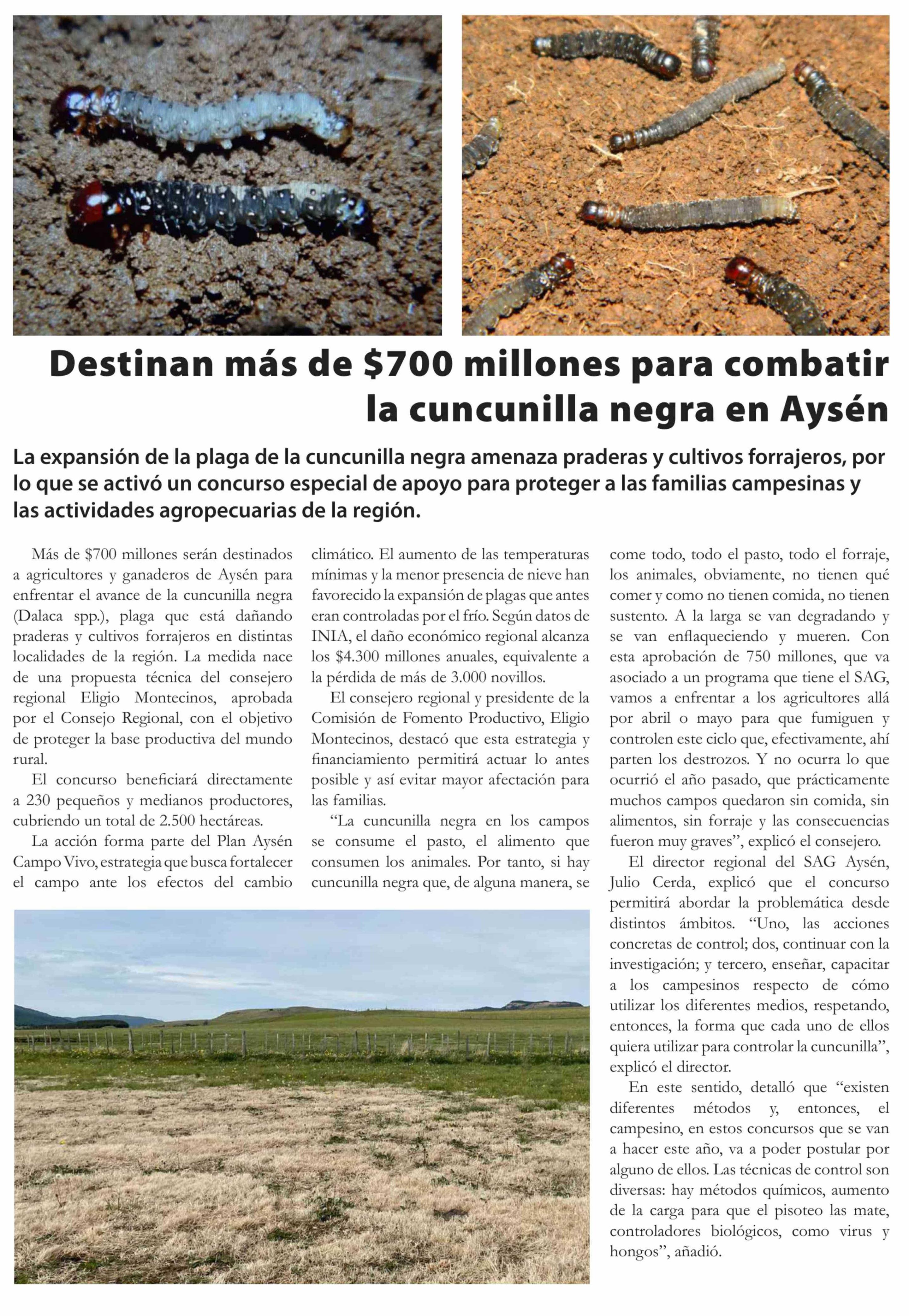 Destinan más de $700 millones para combatir la cuncunilla negra en Aysén