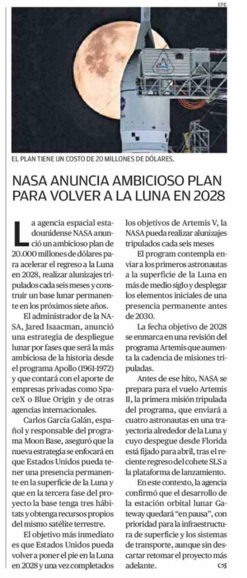 NASA ANUNCIA AMBICIOSO PLAN PARA VOLVER A LA LUNA EN 2028