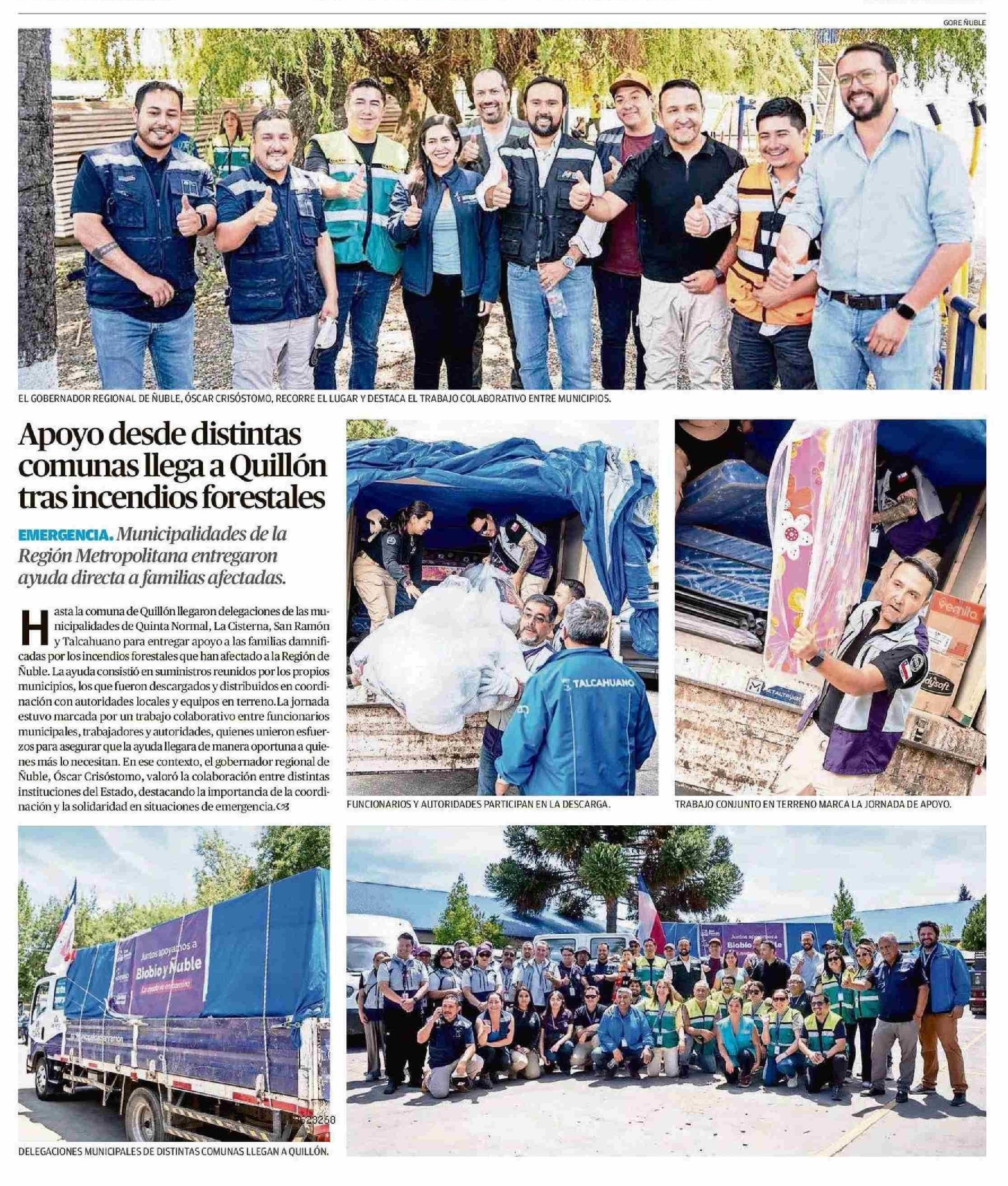 Apoyo desde distintas comunas llega a Quillón tras incendios forestales
