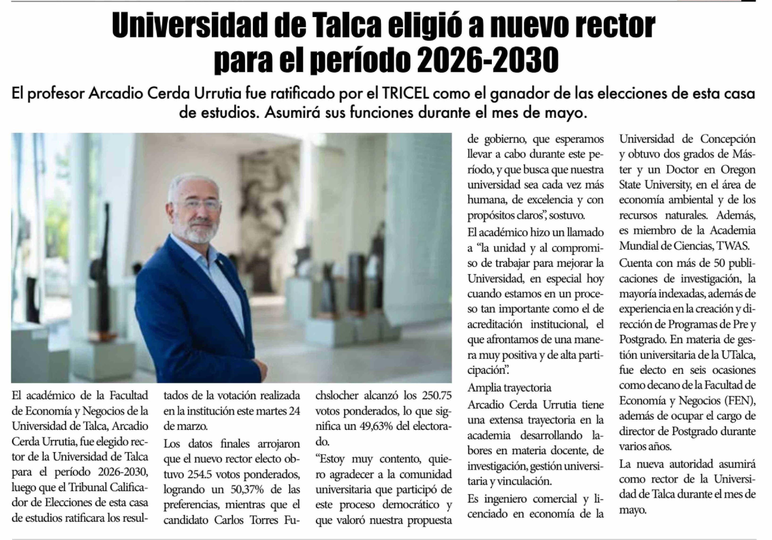 Universidad de Talca eligió a nuevo rector para el período 2026-2030