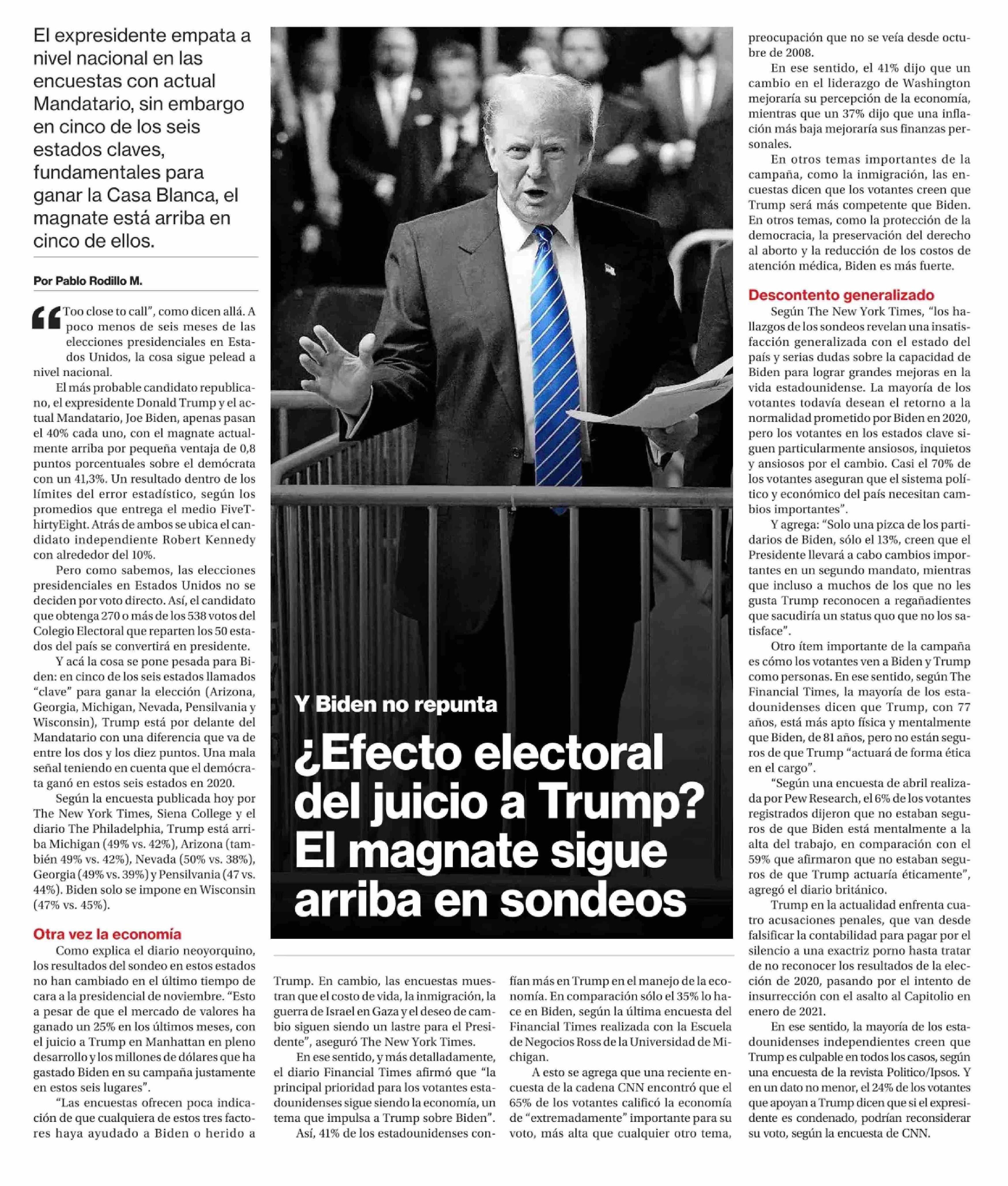 ¿Efecto electoral del juicio a Trump? El magnate sigue arriba en sondeos