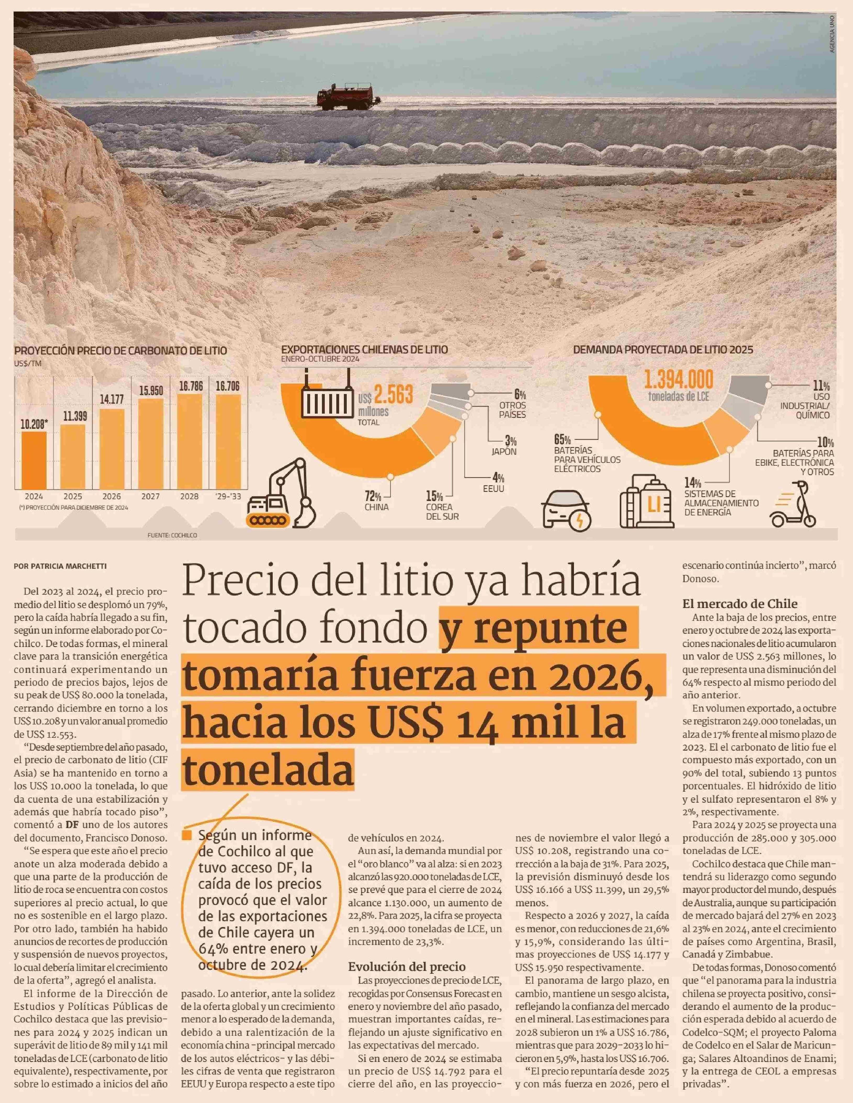 Precio del litio ya habría tocado fondo y repunte tomaría fuerza en , hacia los US$ 14 mil la tonelada
