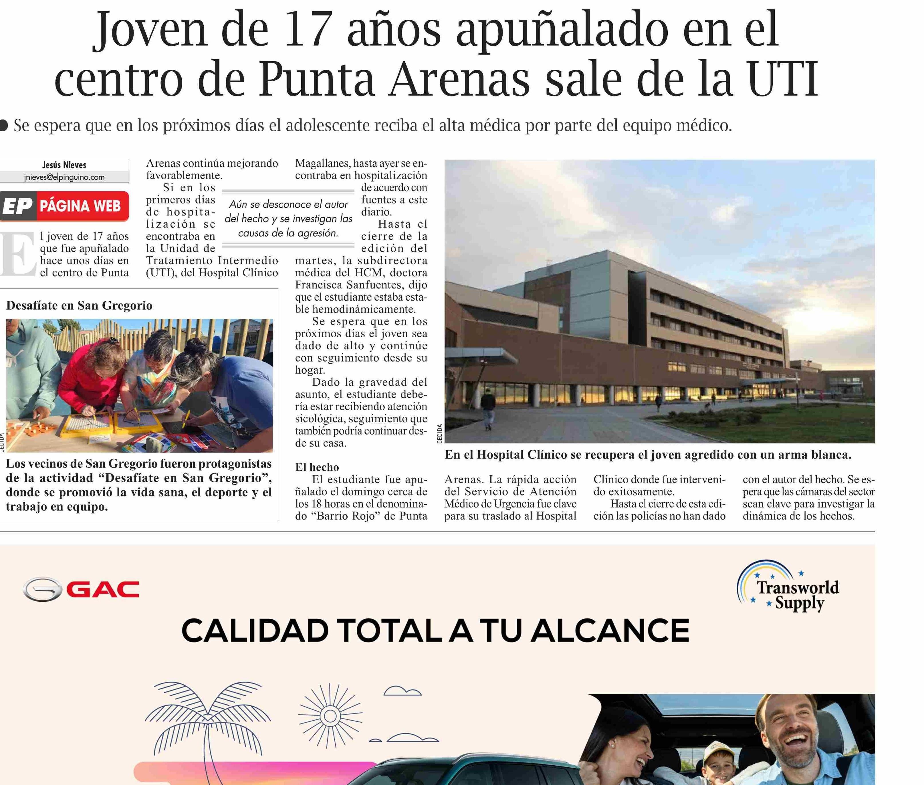 Título: Joven de 17 años apuñalado en el centro de Punta Arenas sale de la UTI