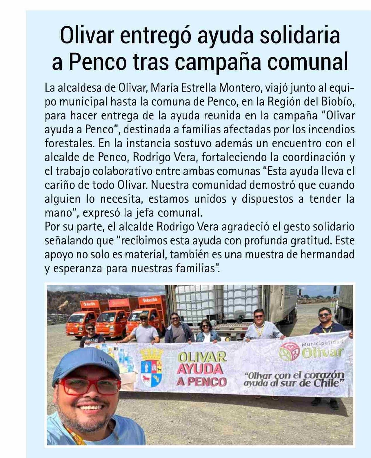Olivar entregó ayuda solidaria a Penco tras campaña comunal