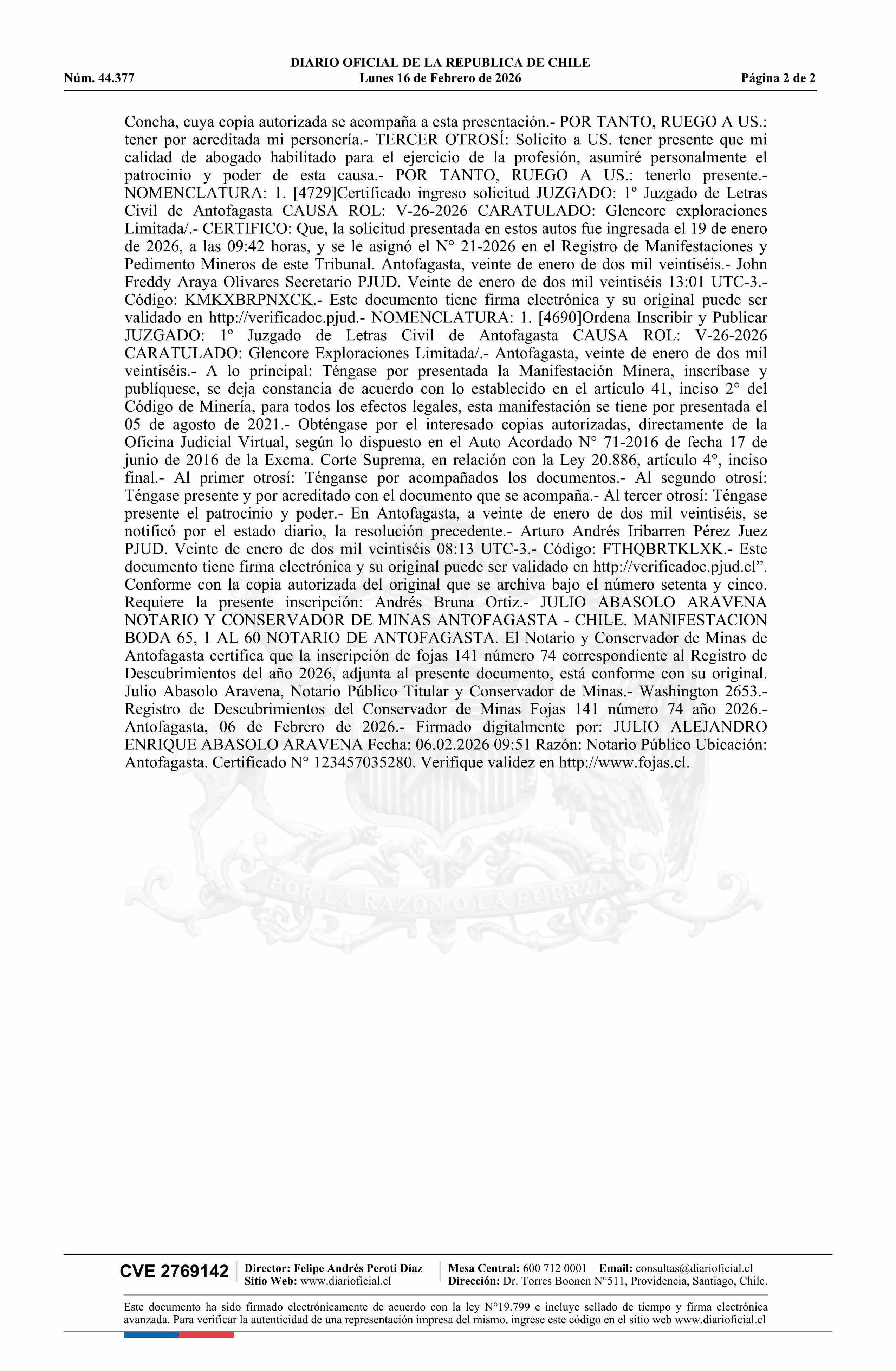 DIARIO OFICIAL CHILE - BOLETÍN OFICIAL DE MINERÍA (DIARIO OFICIAL CHILE – BOM – MANIFESTACIONES MIN)